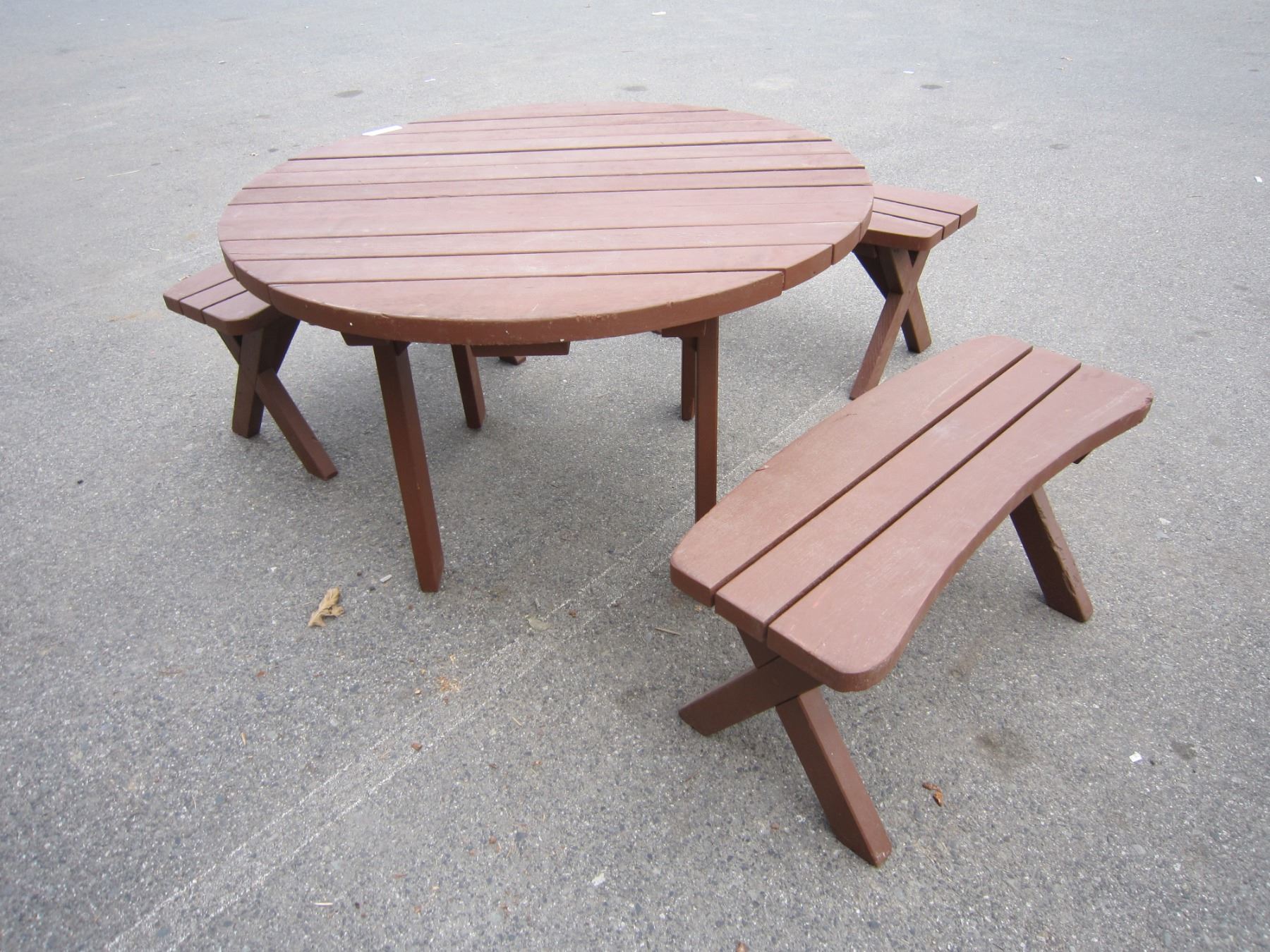PAINTED WOOD PATIO TABLE W/ 3 BENCHES