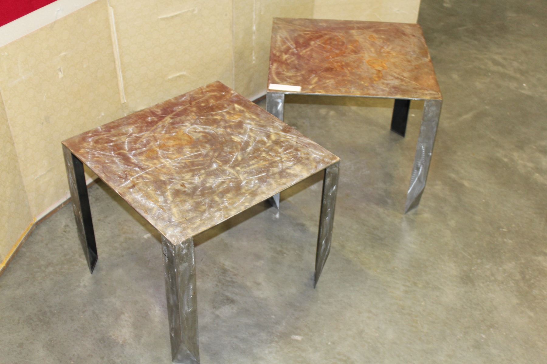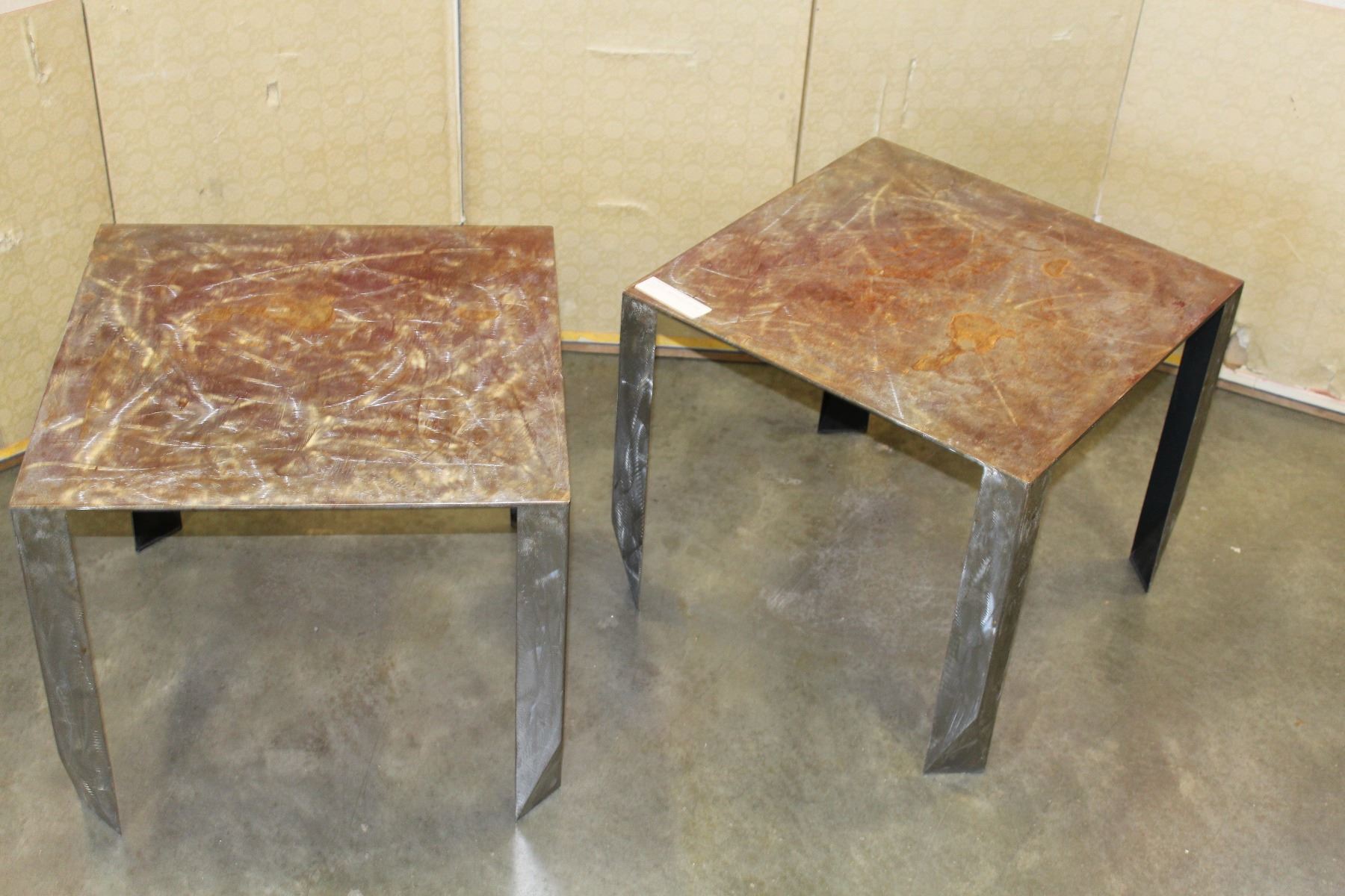 PAIR METAL INDUSTRIAL-LOOK END TABLES