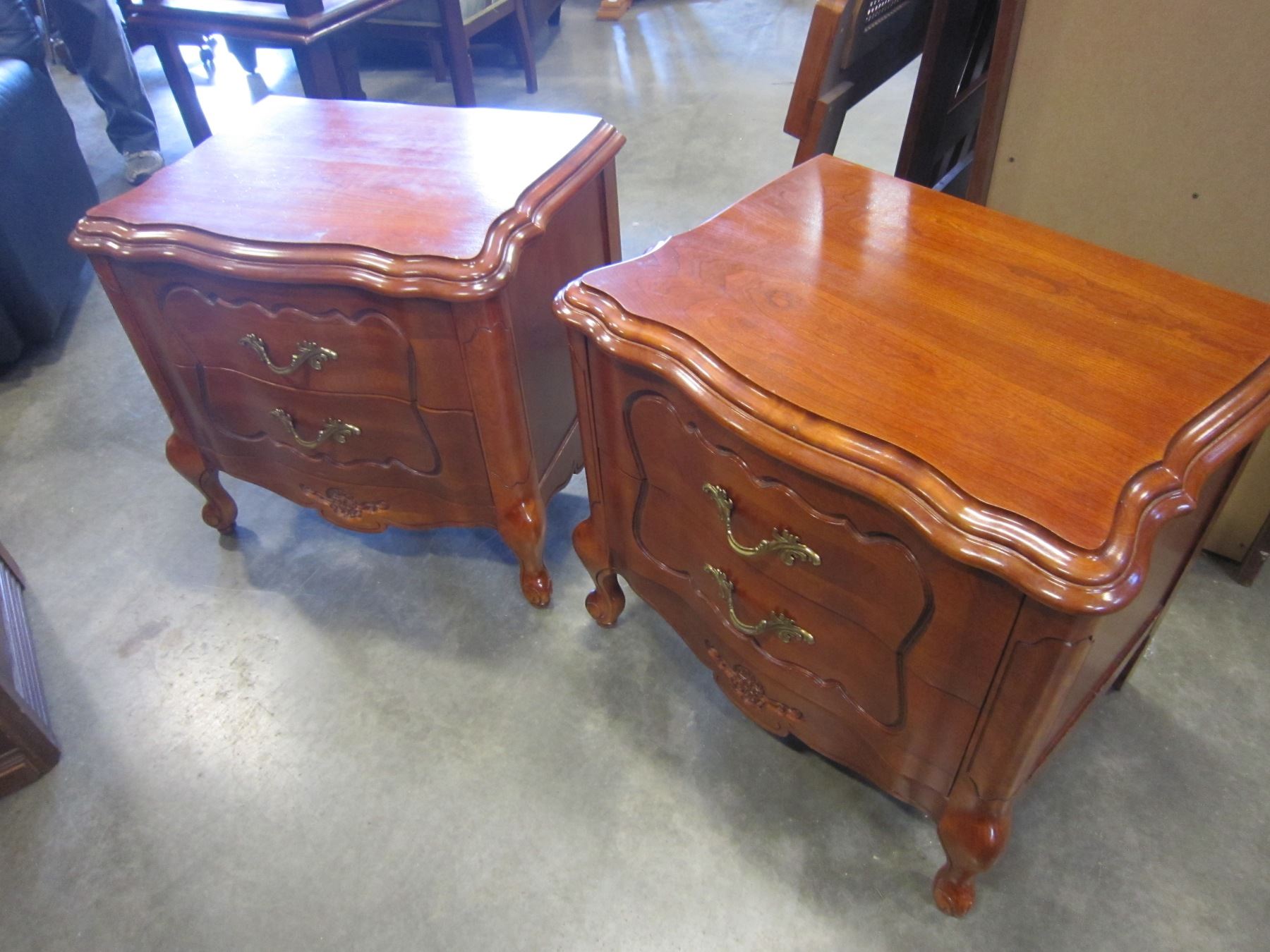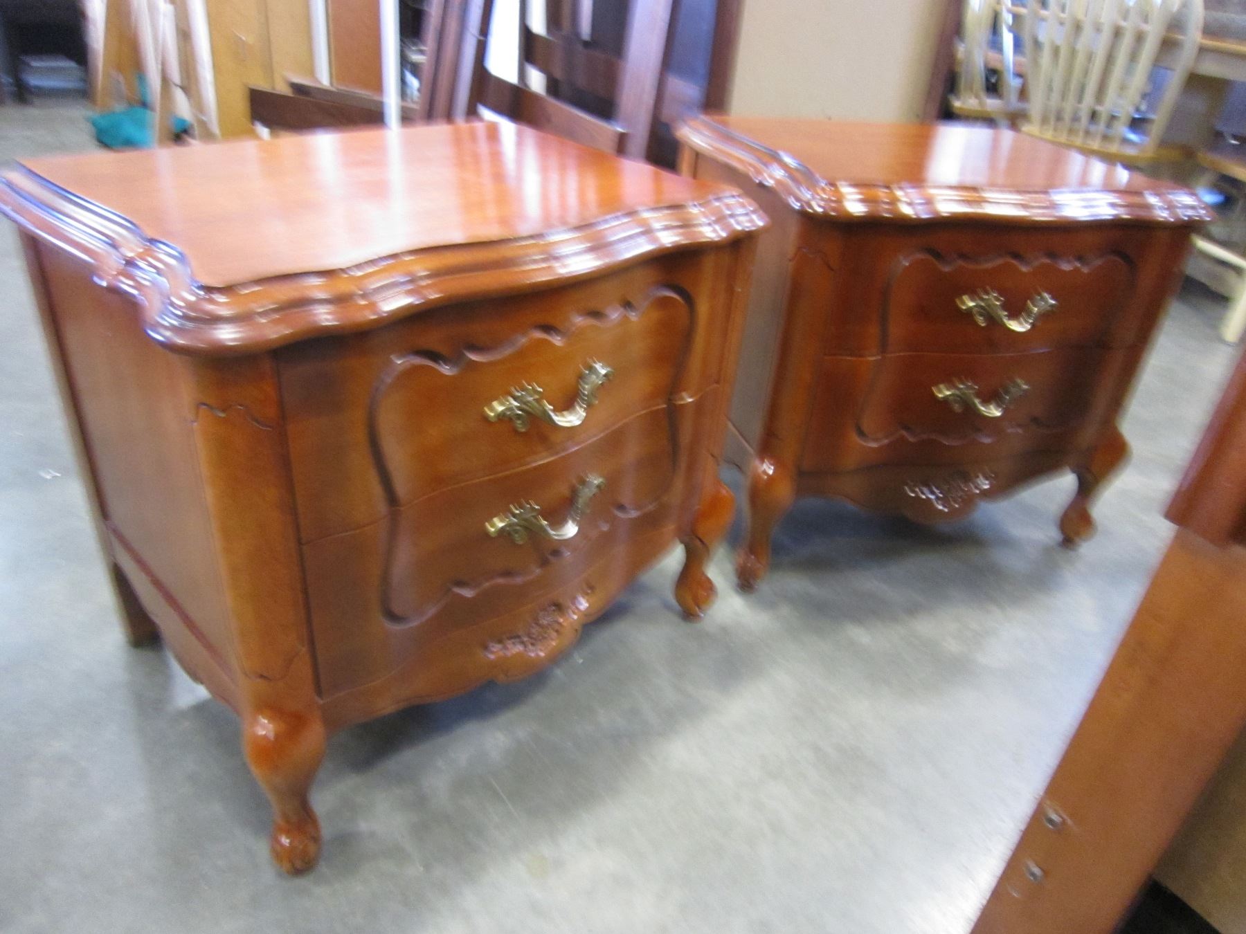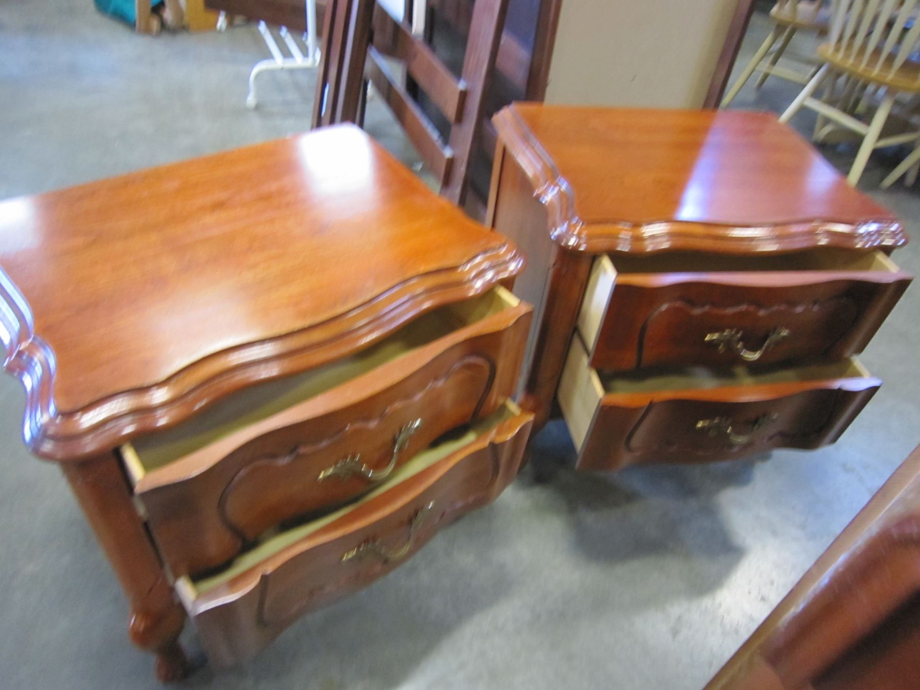 PAIR OF 2 DRAWER FRENCH PROVINCIAL NIGHTSTANDS AND HEADBOARD