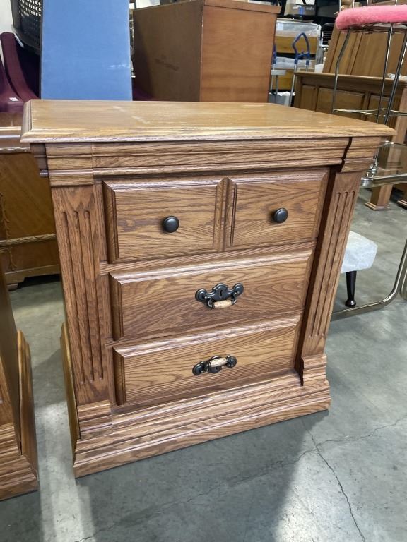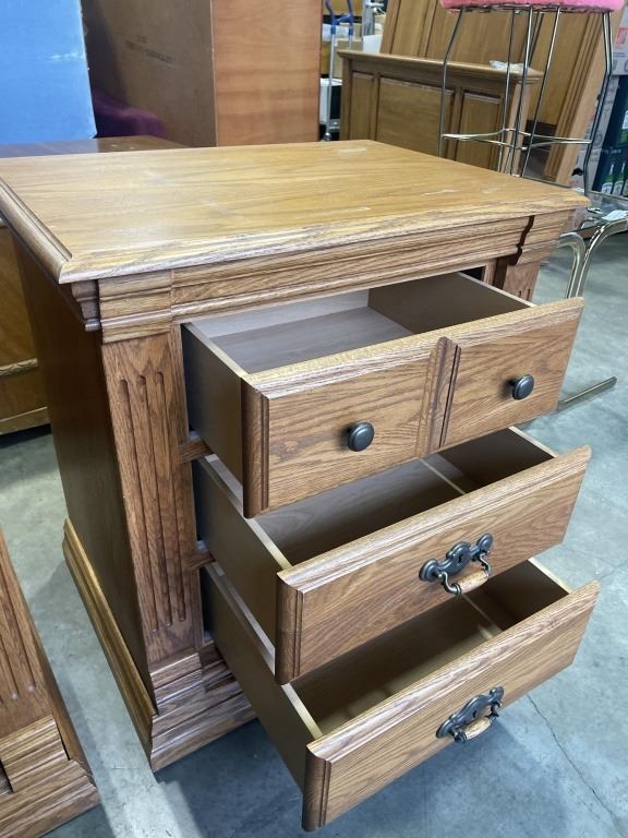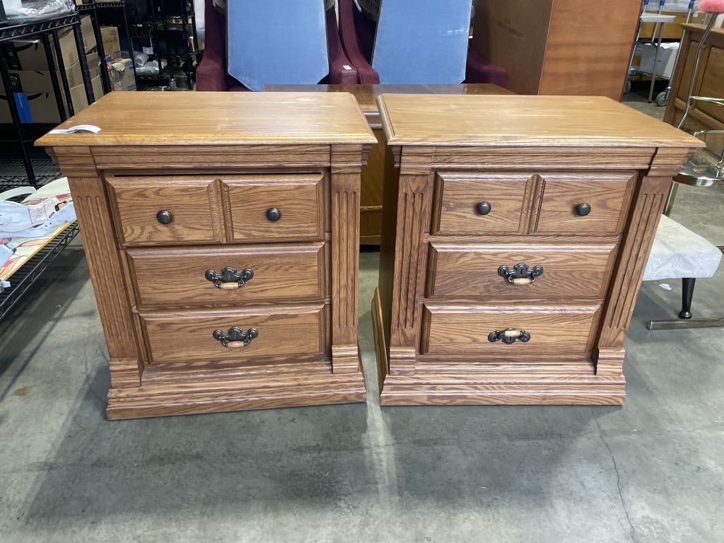 PAIR OF 3 DRAWER OAK NIGHTSTANDS