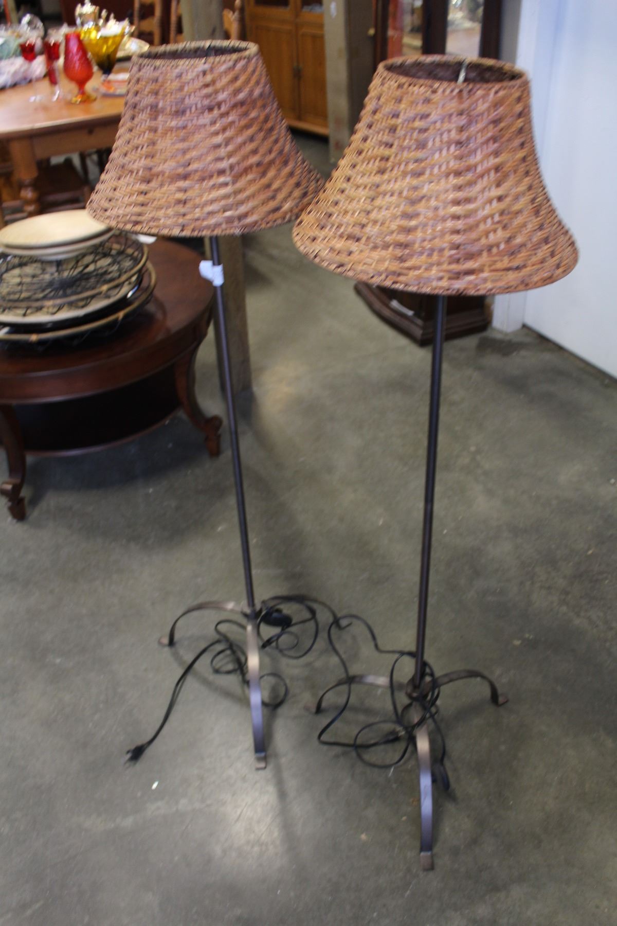 PAIR OF 50 INCH METAL BASE FLOOR LAMPS WITH ADJUSTABLE RATTAN SHADES