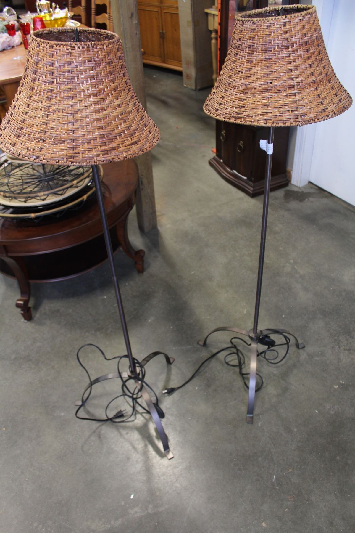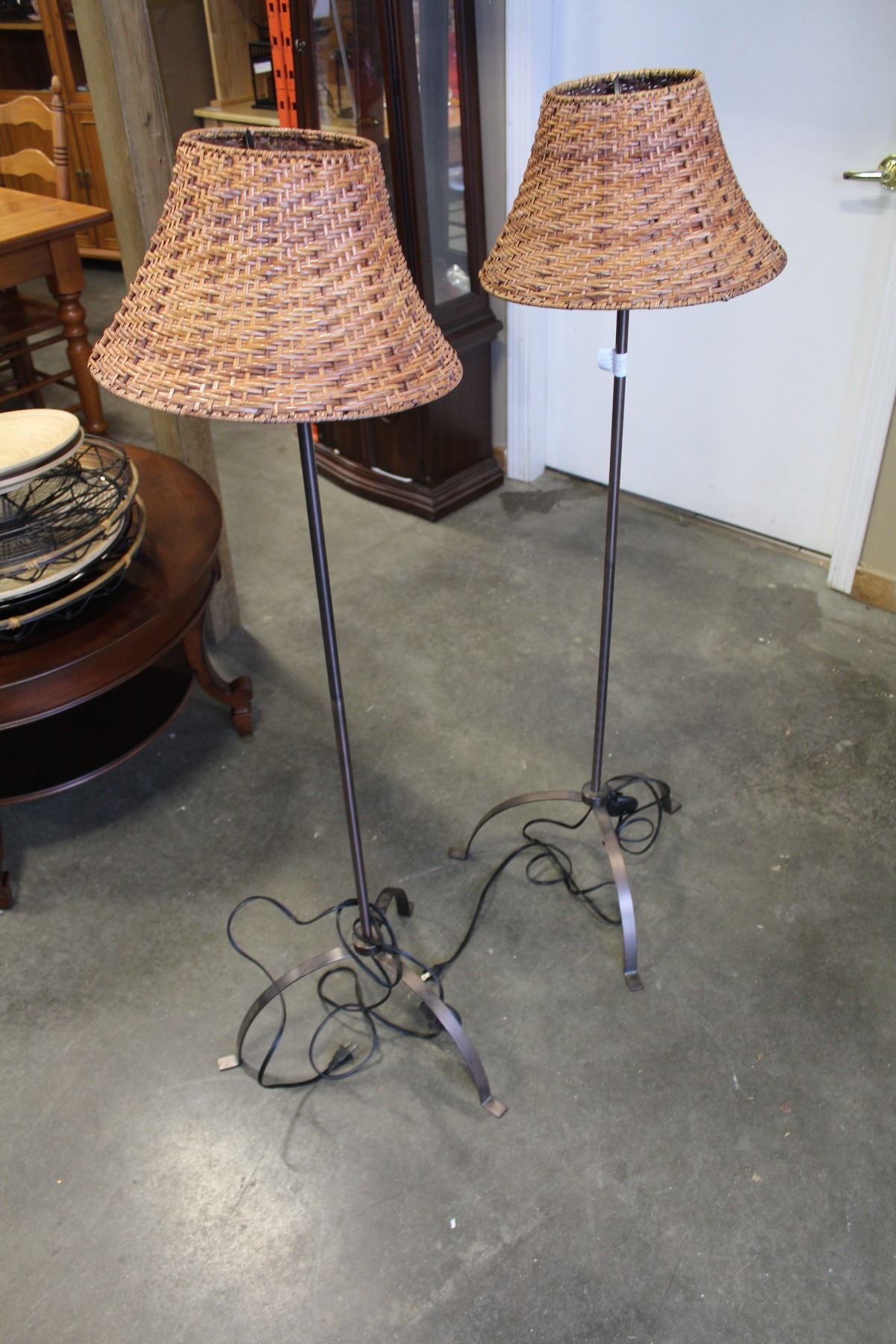 PAIR OF 50 INCH METAL BASE FLOOR LAMPS WITH ADJUSTABLE RATTAN SHADE