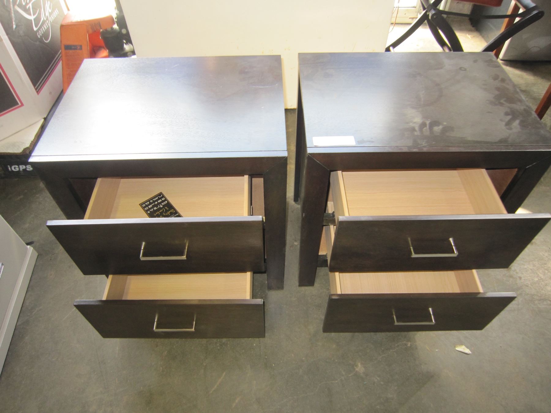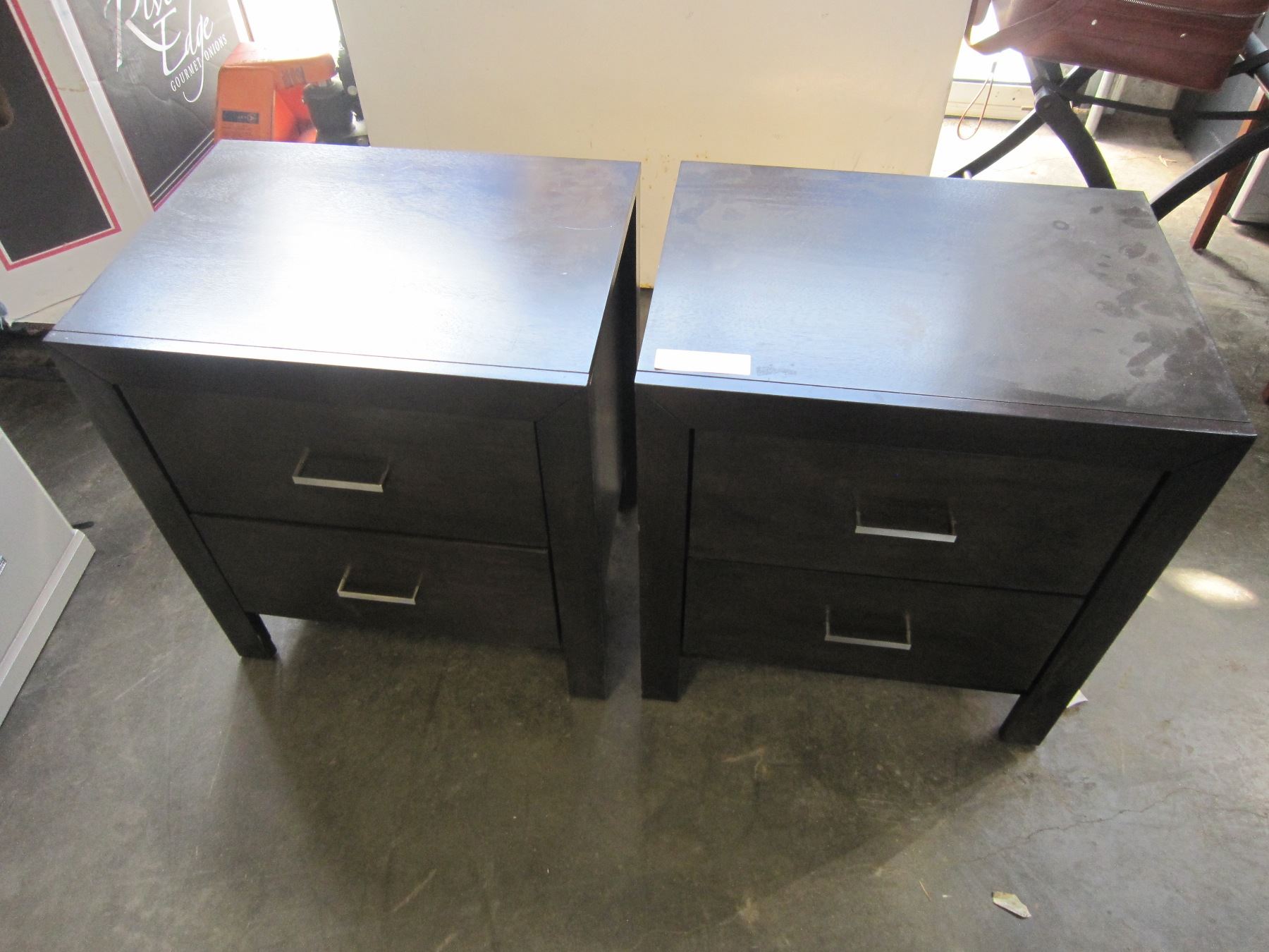 PAIR OF ASHLEY 2 DRAWER DARK FINISH MODERN NIGHTSTANDS, RETAIL $189 EACH