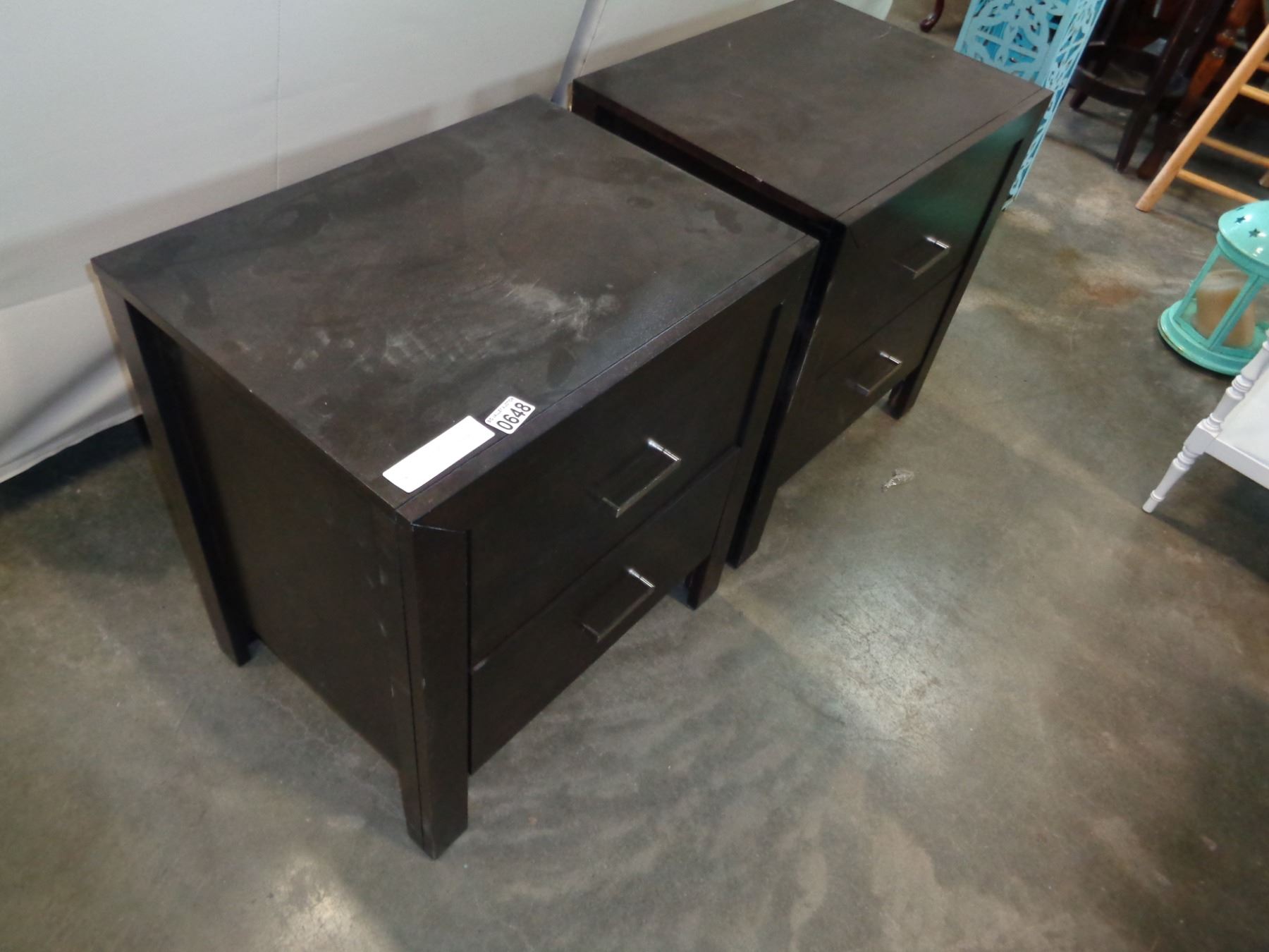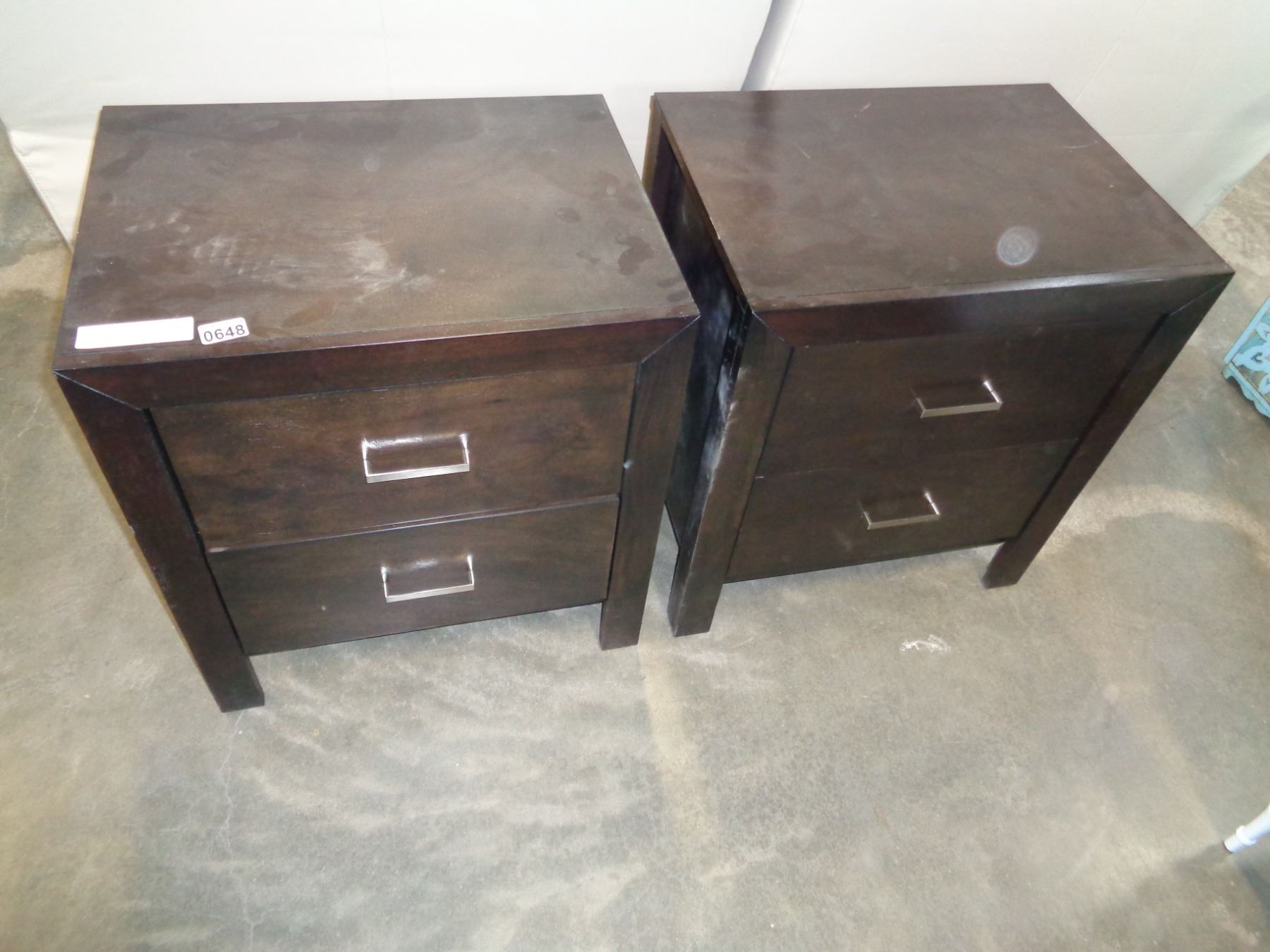 PAIR OF ASHLEY DARK FINISH 2 DRAWER ENDTABLES, RETAIL $299 EACH