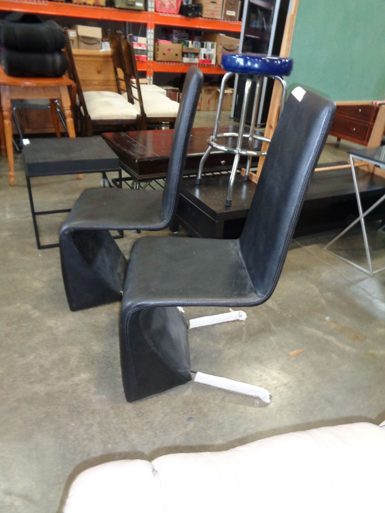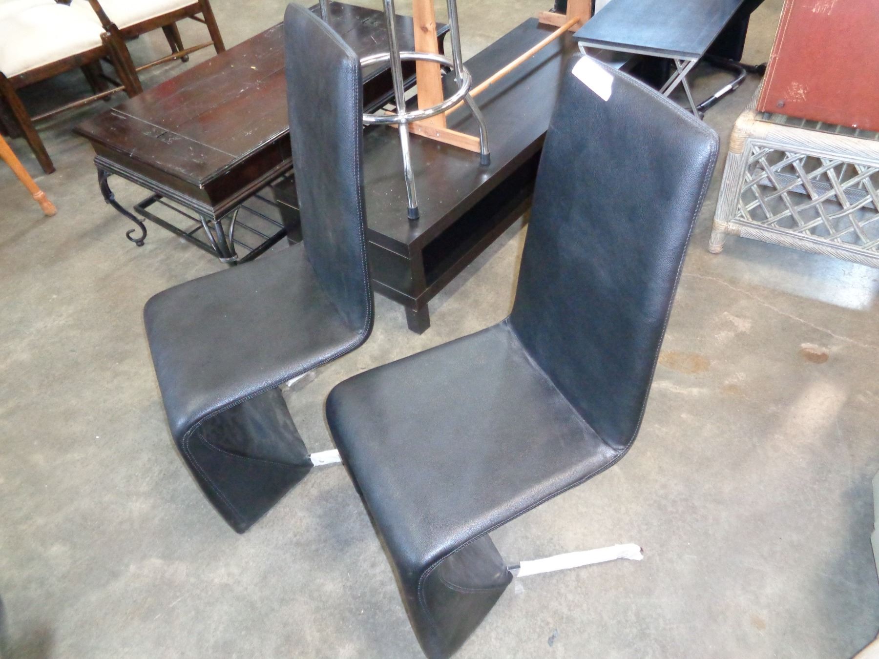 PAIR OF ASHLEY MODERN BLACK LEATHER SIDE CHAIRS RETAIL $249 EACH