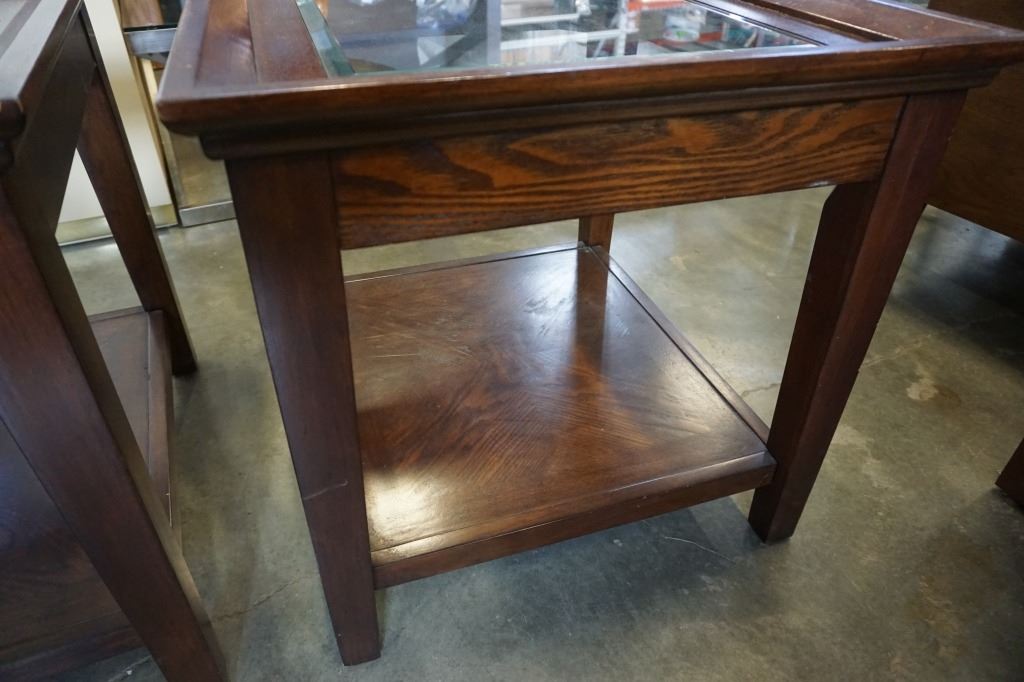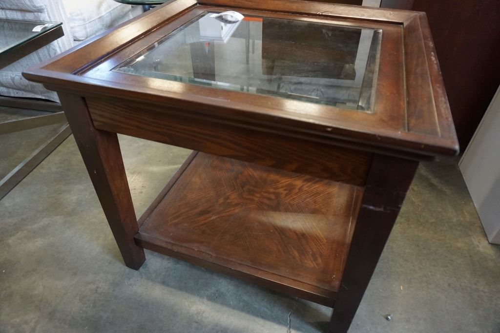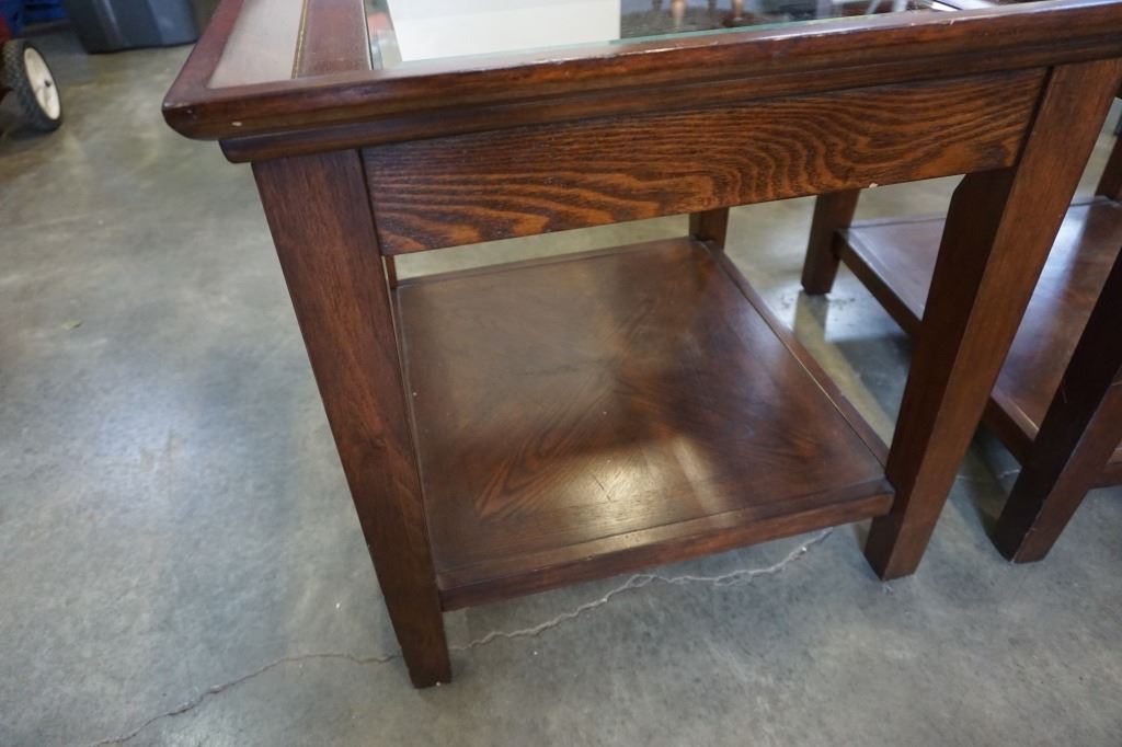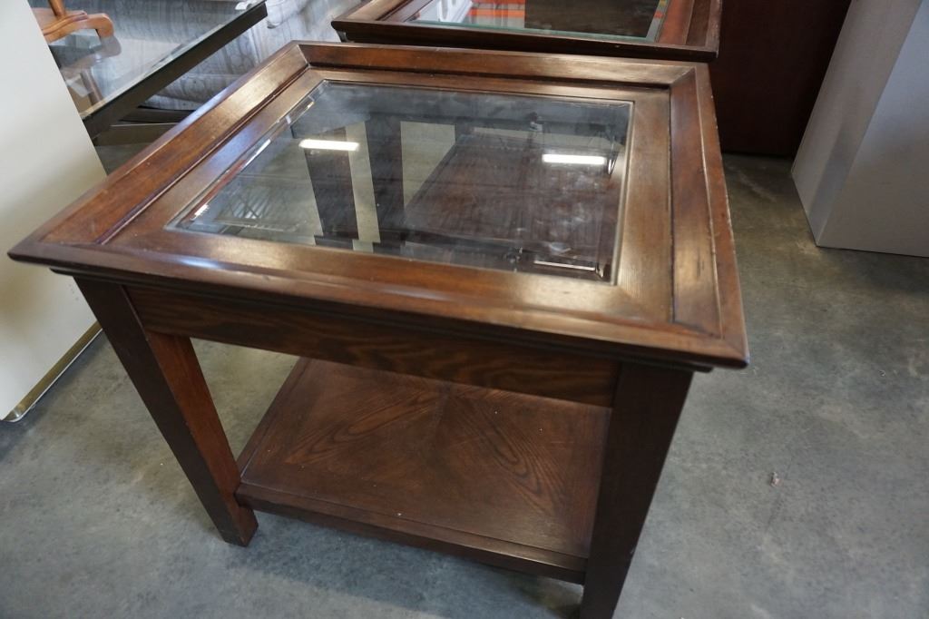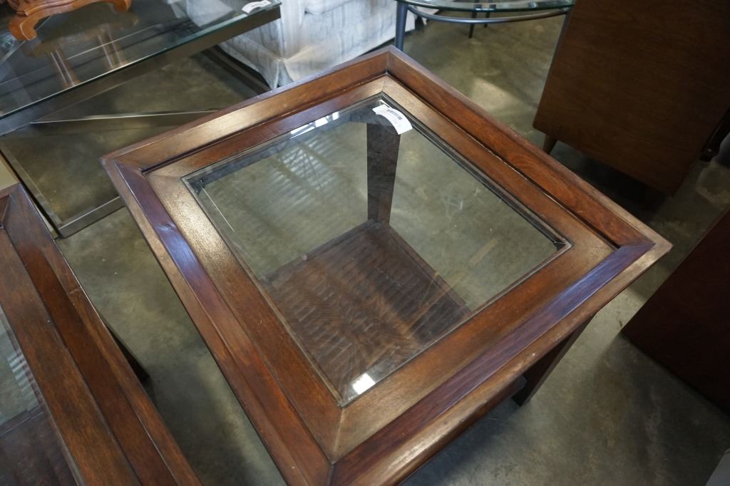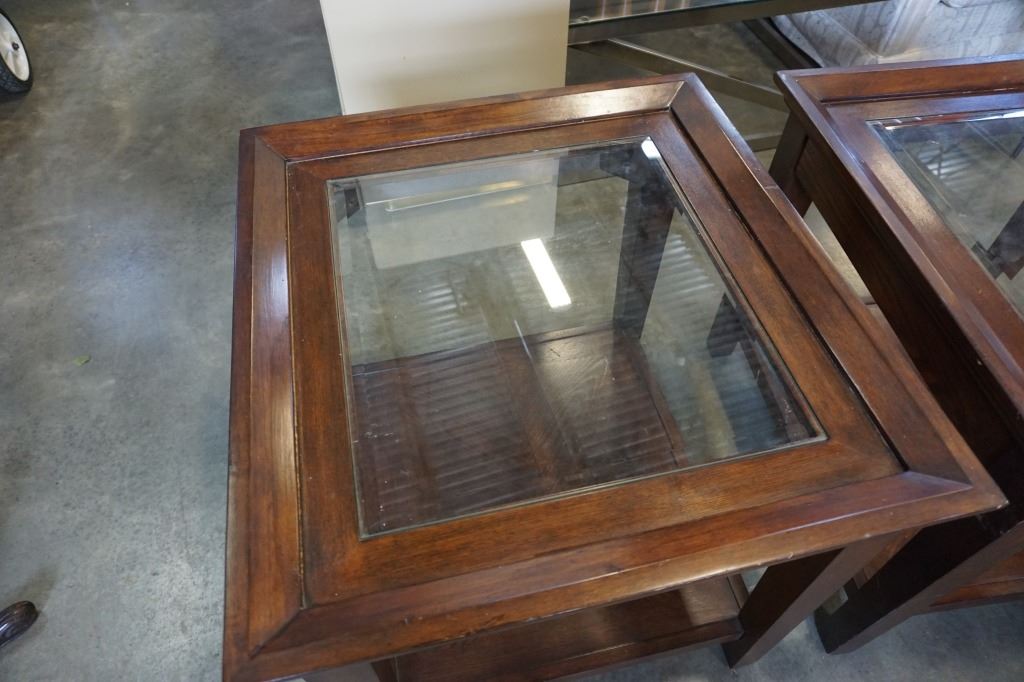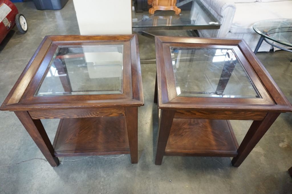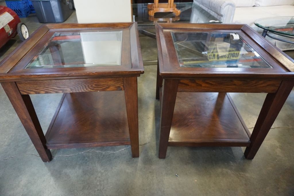 PAIR OF BEVELLED GLASSTOP ENDTABLES - 23.5 INCH WIDE X 25.5 X 23 TALL