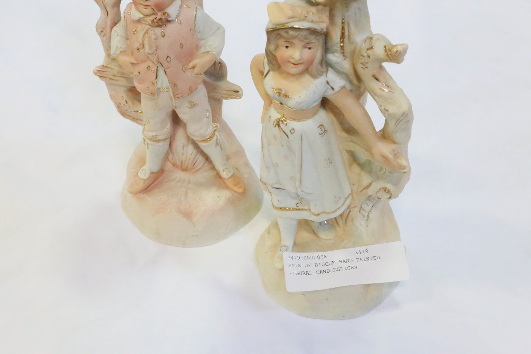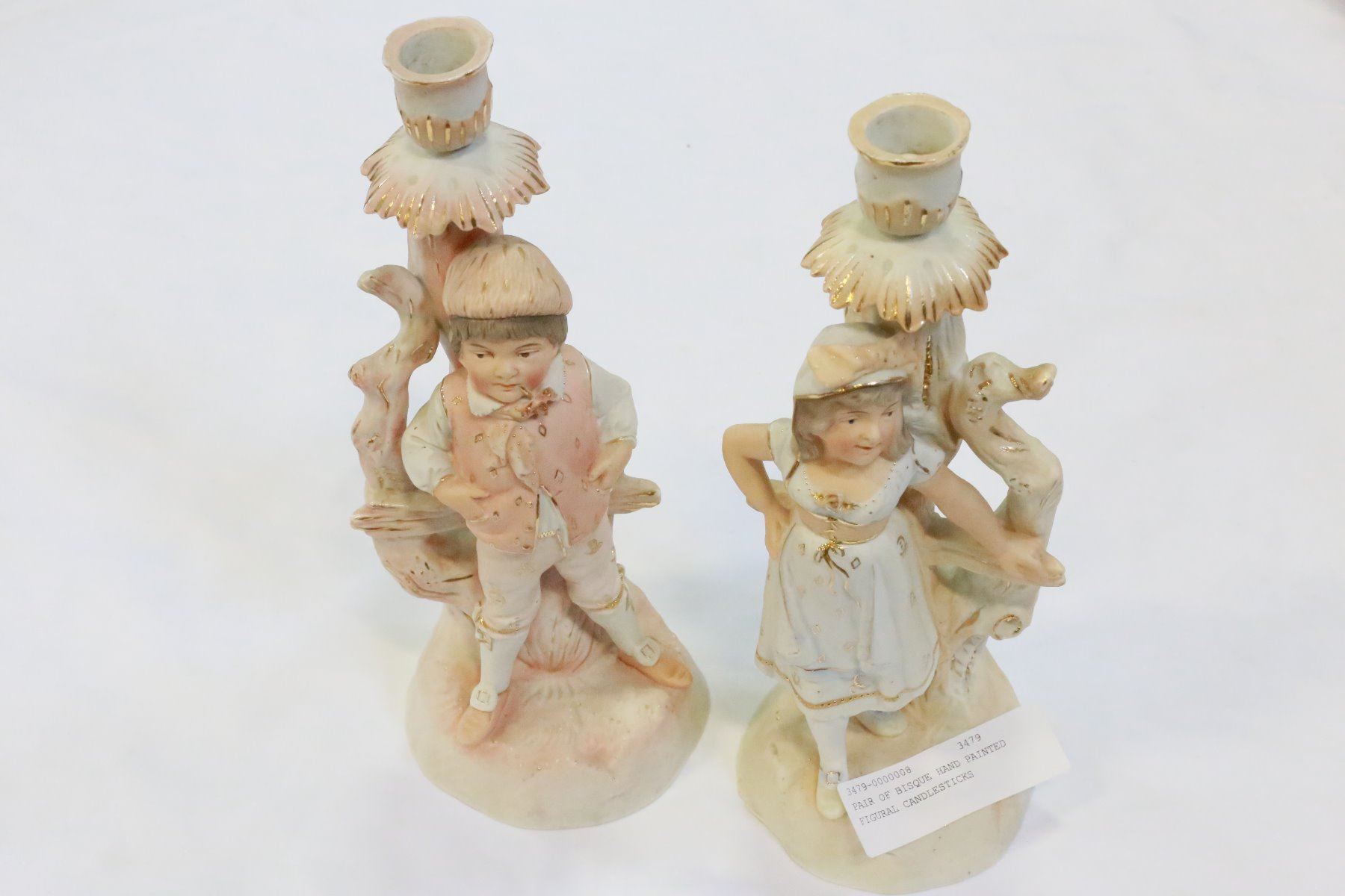 PAIR OF BISQUE HAND PAINTED FIGURAL CANDLESTICKS