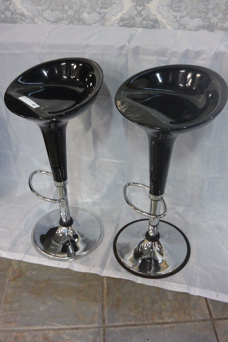 PAIR OF BLACK AND CHROME BARSTOOLS