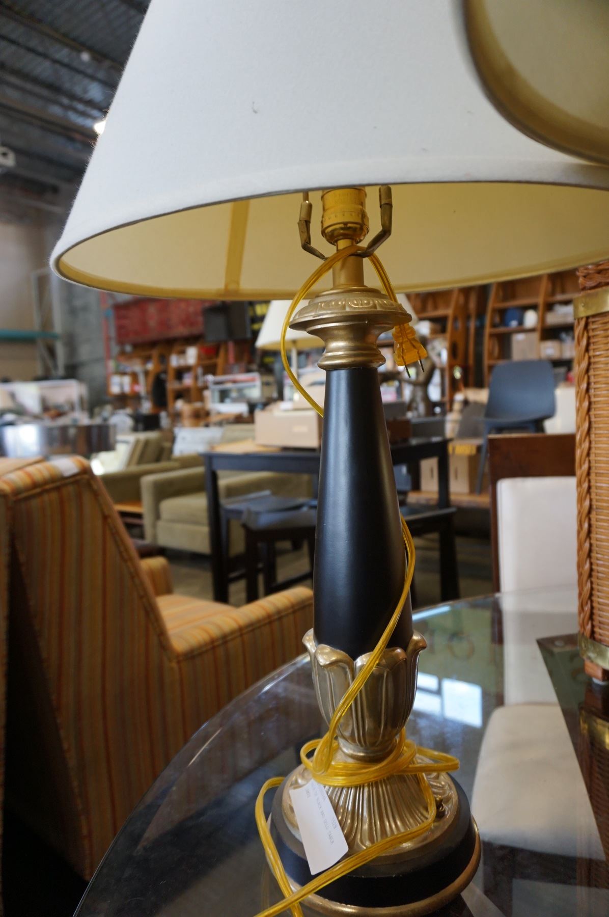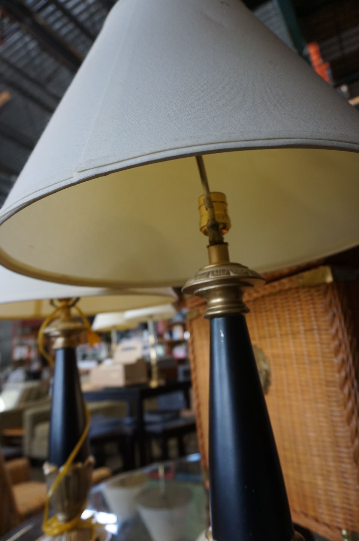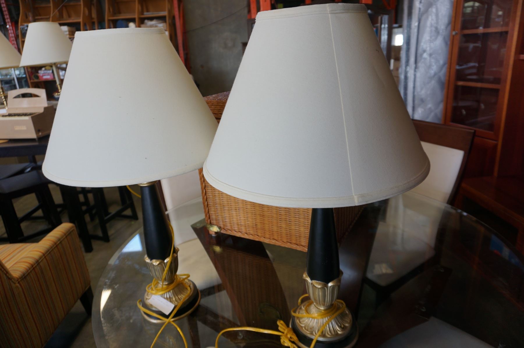 PAIR OF BLACK AND GOLD TABLE LAMPS