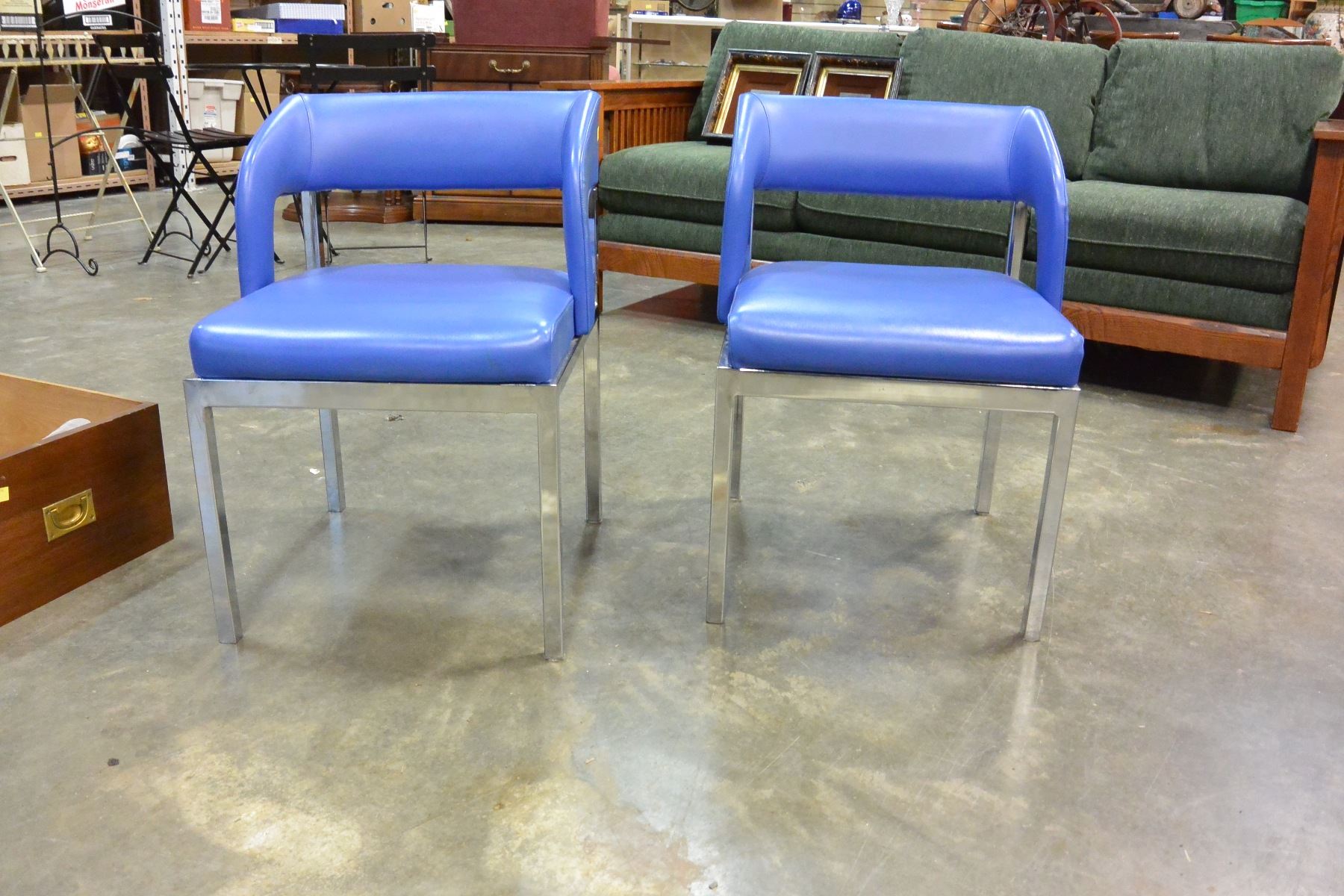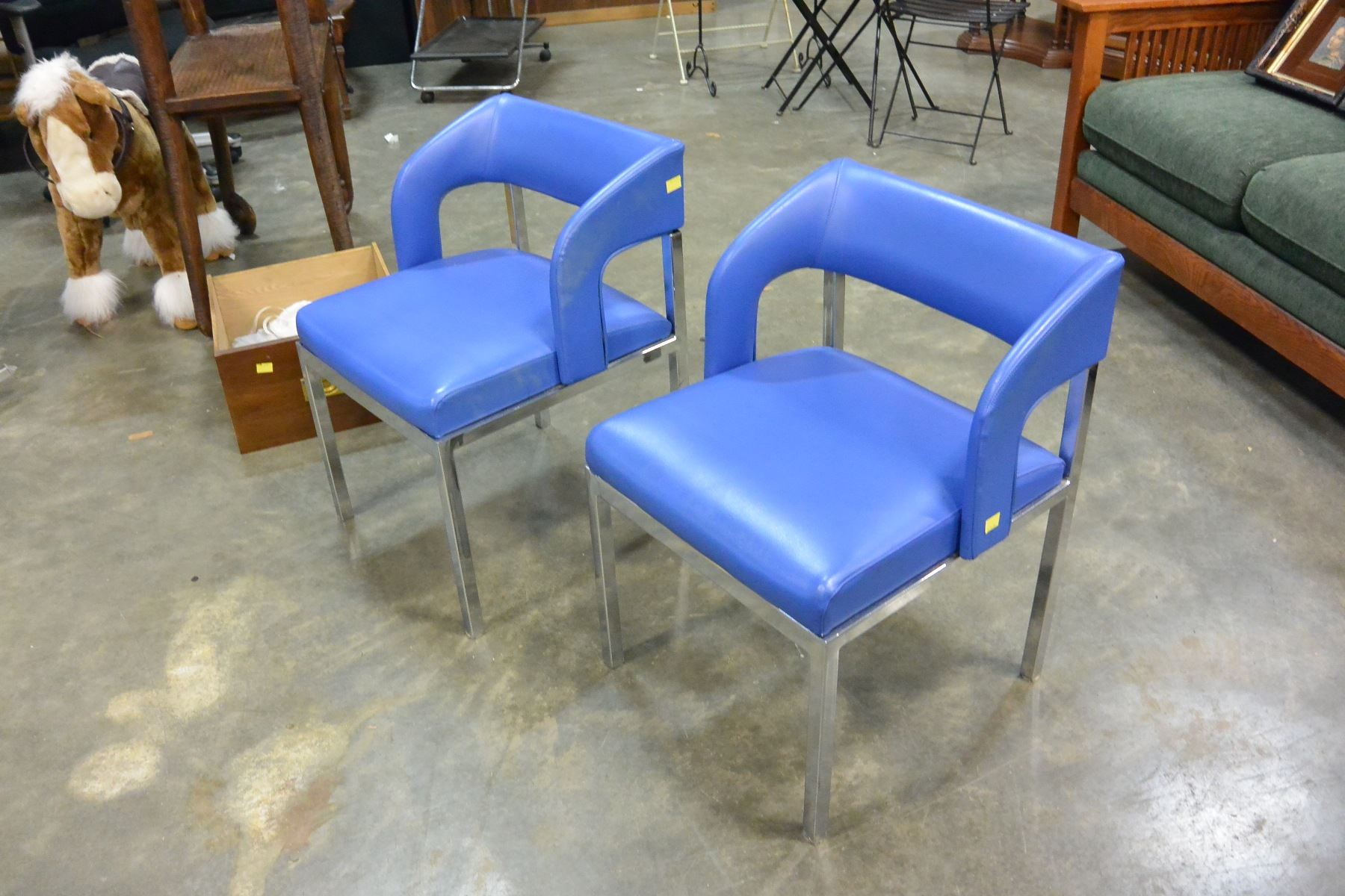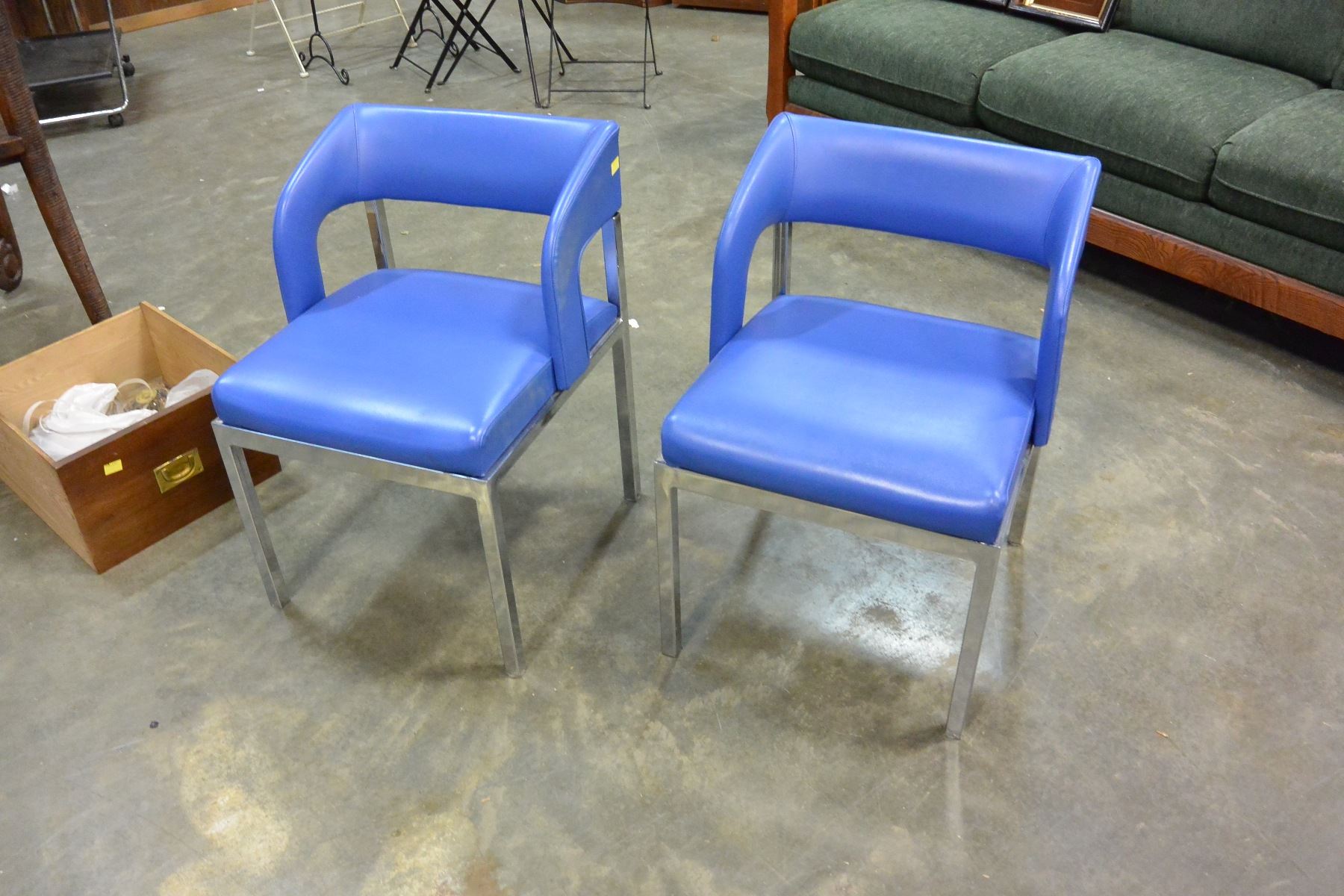 PAIR OF BLUE LEATHER AND CHROME CHAIRS