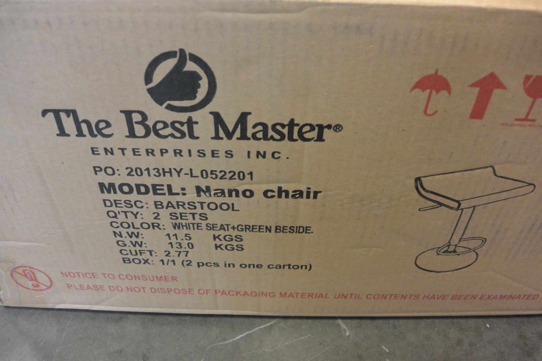 PAIR OF BRAND NEW BESTMASTER WHITE WITH GREEN SIDE GAS LIFT BARSTOOLS RETAIL $149 EACH