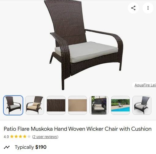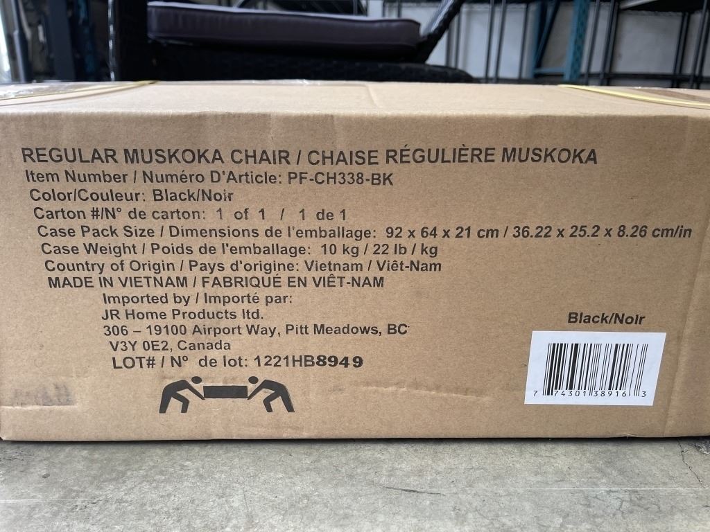 PAIR OF BRAND NEW PATIO FLARE MUSKOKA CHAIRS, NEW IN BOX, RETAIL $179 EACH