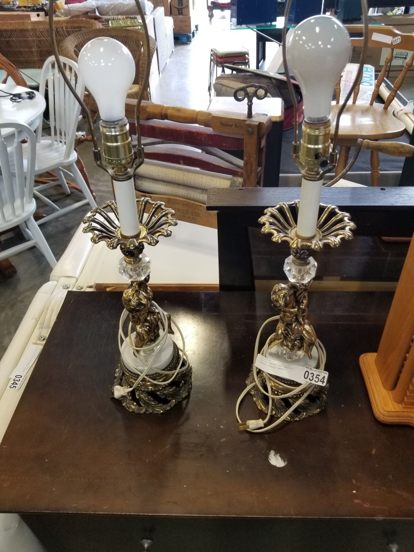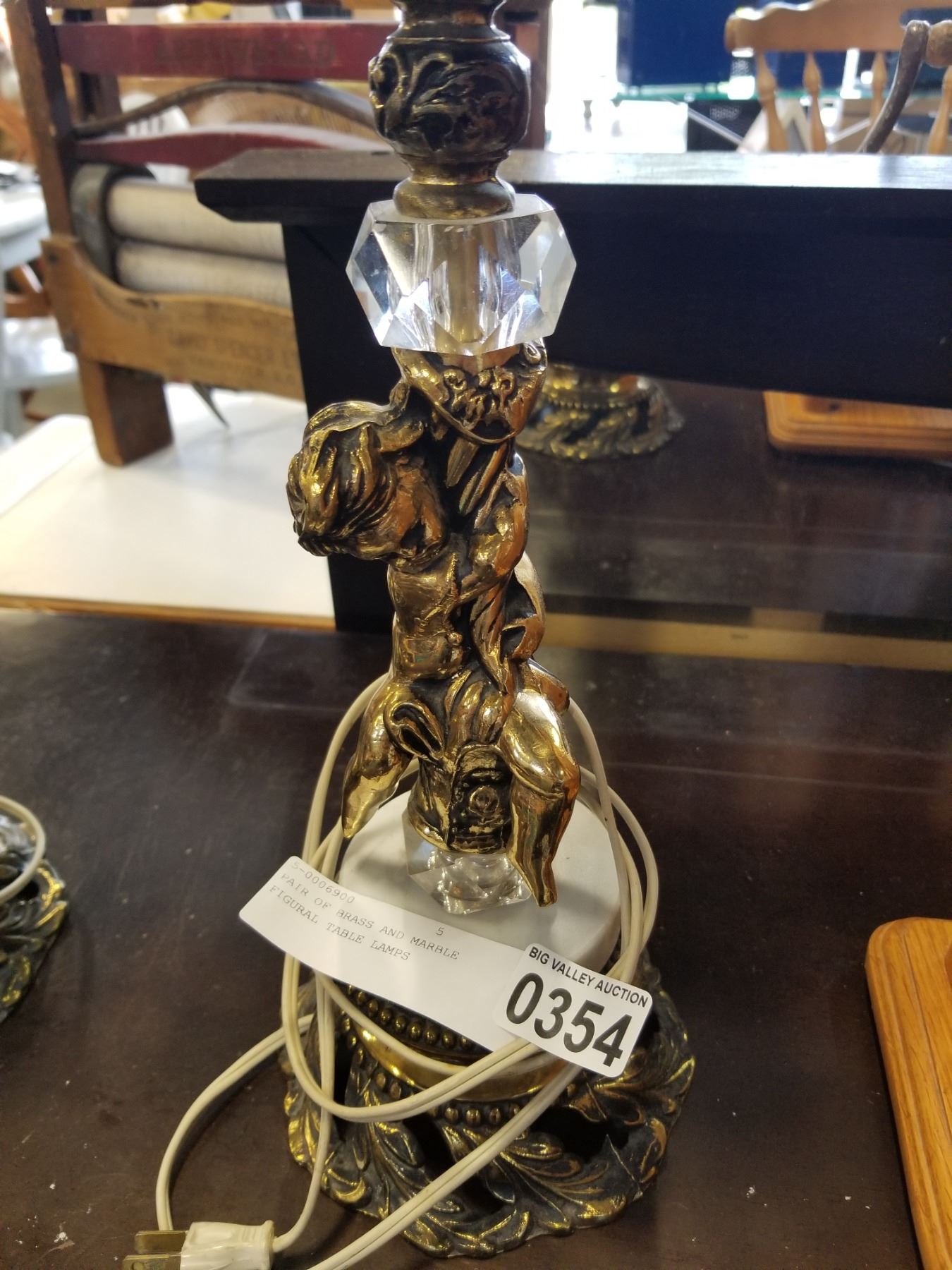 PAIR OF BRASS AND MARBLE FIGURAL TABLE LAMPS