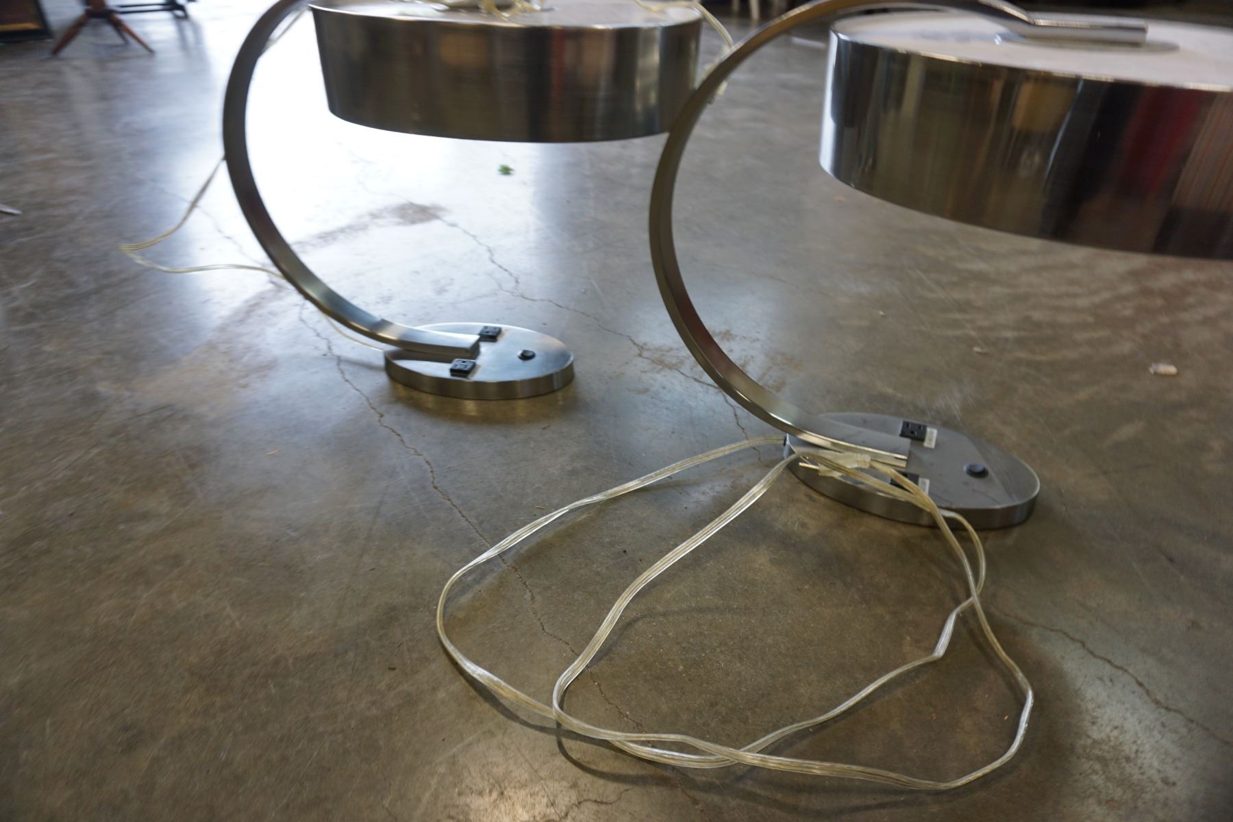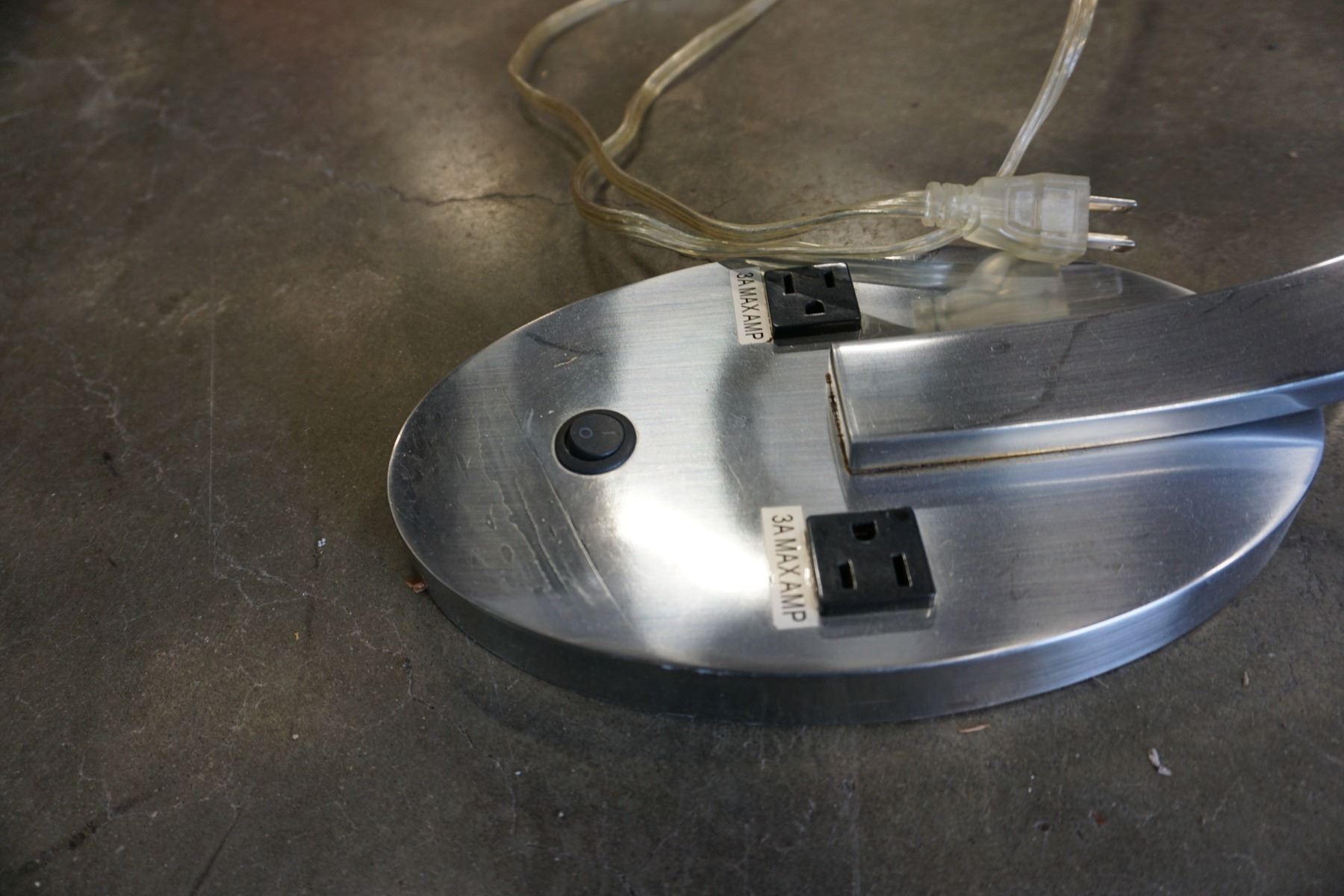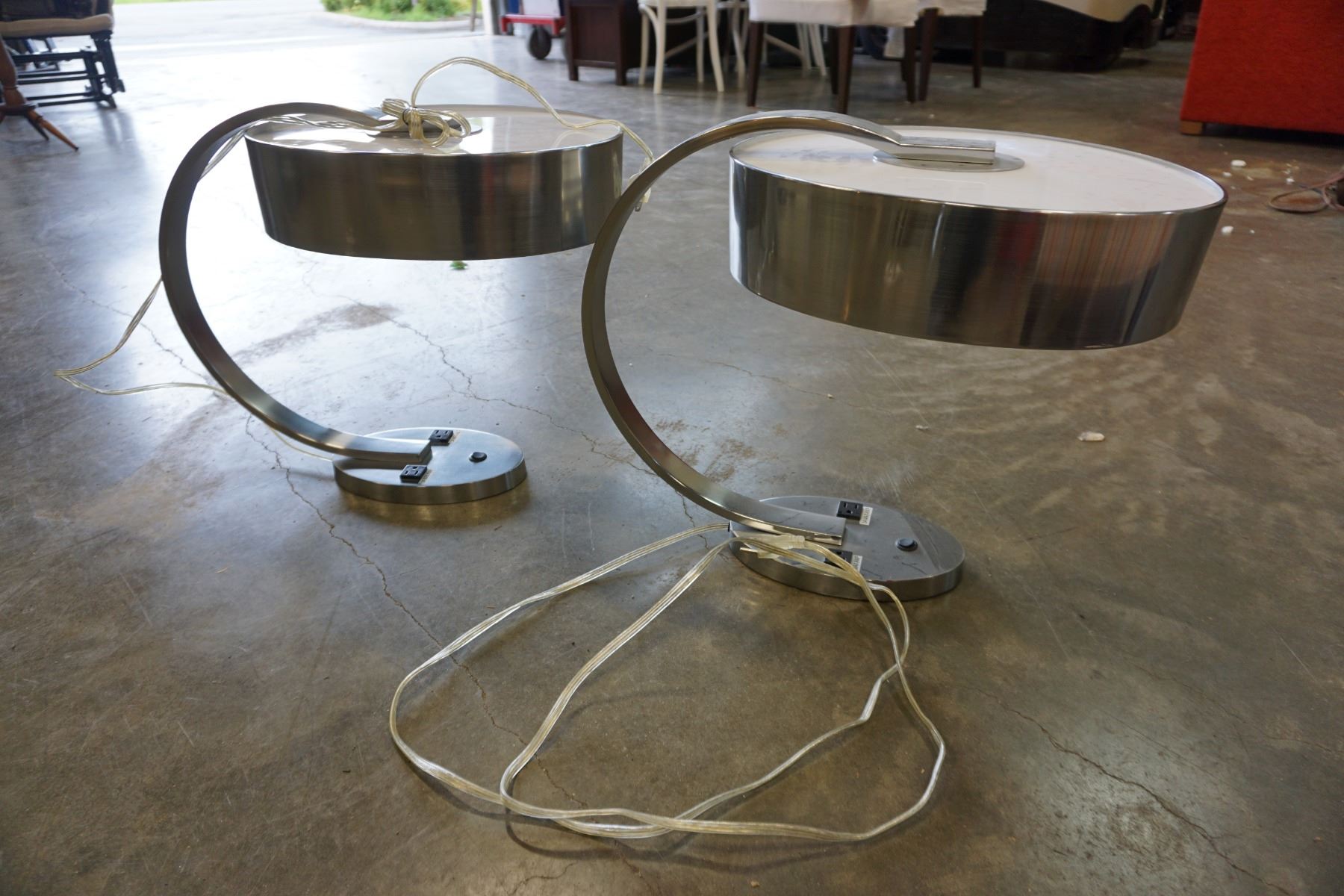 PAIR OF BRUSHED METAL TABLE LAMPS W/ OUTLETS