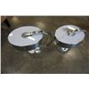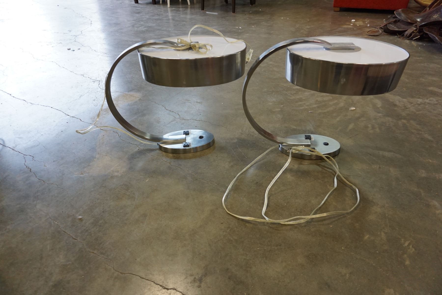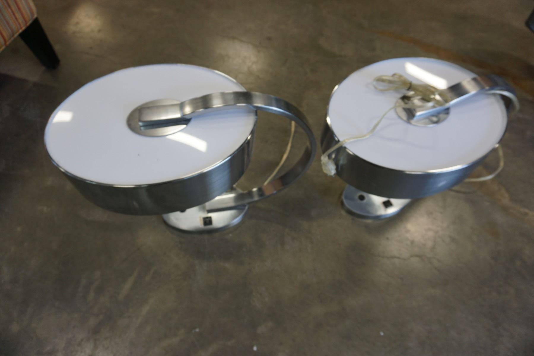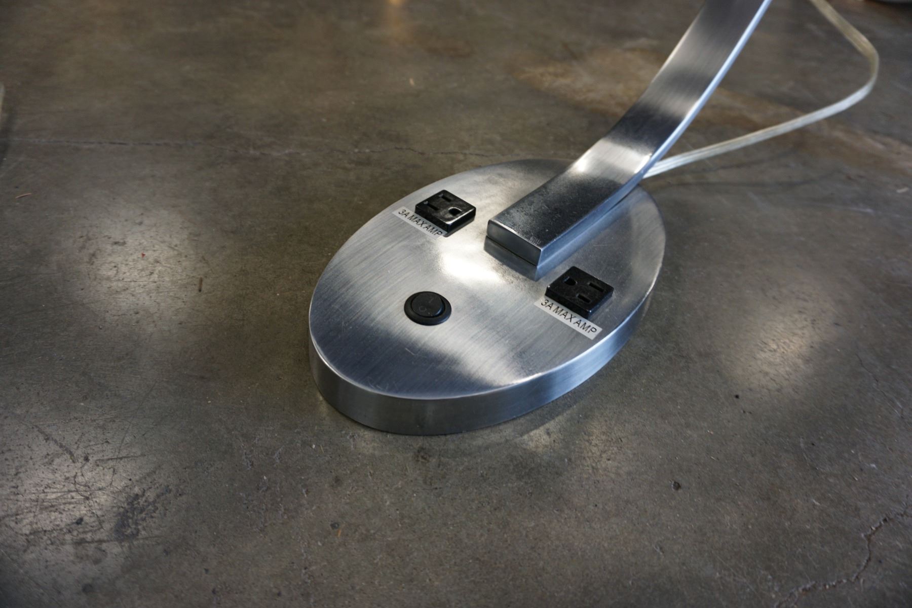 PAIR OF BRUSHED METAL TABLE LAMPS W/ OUTLETS