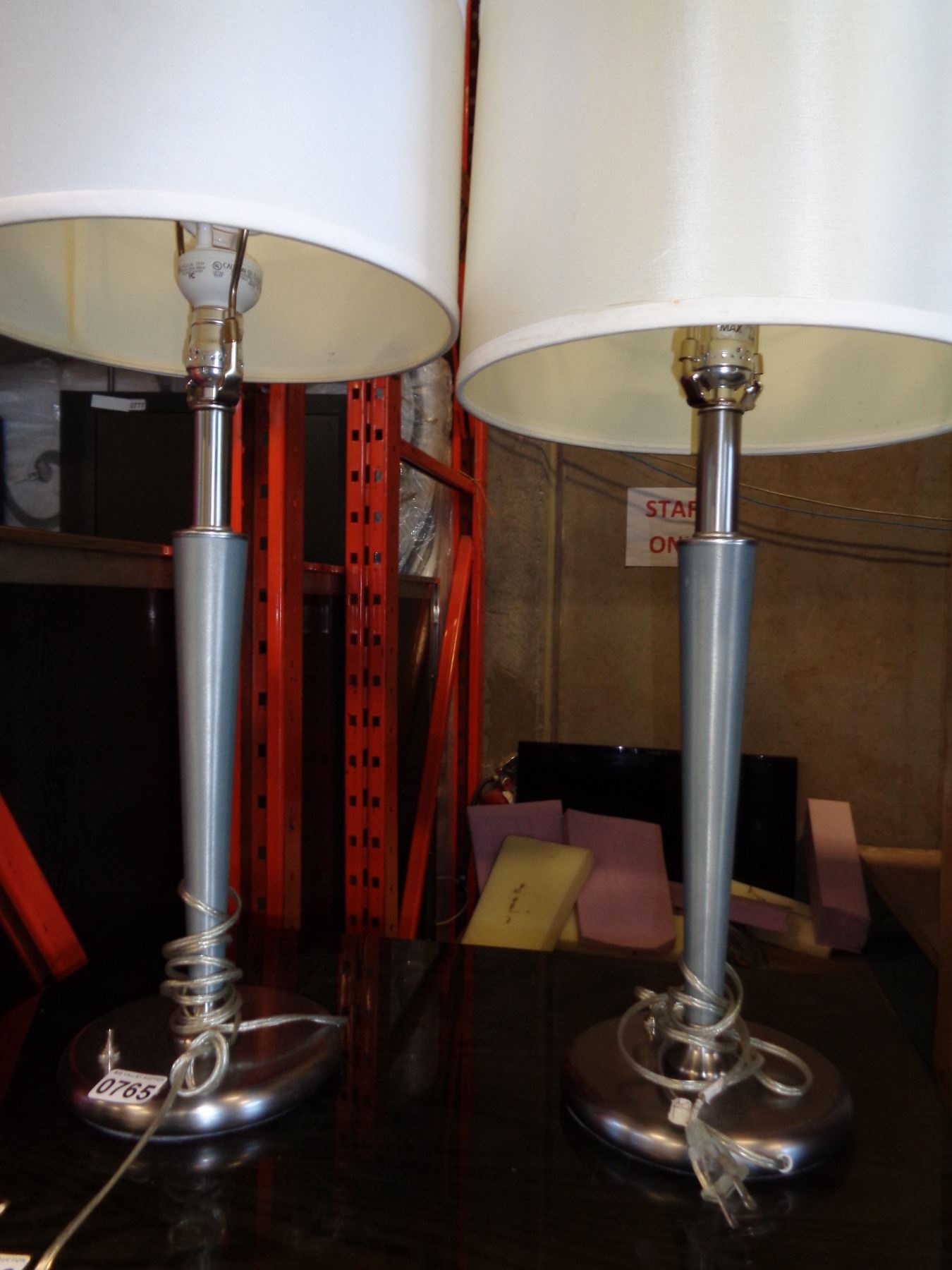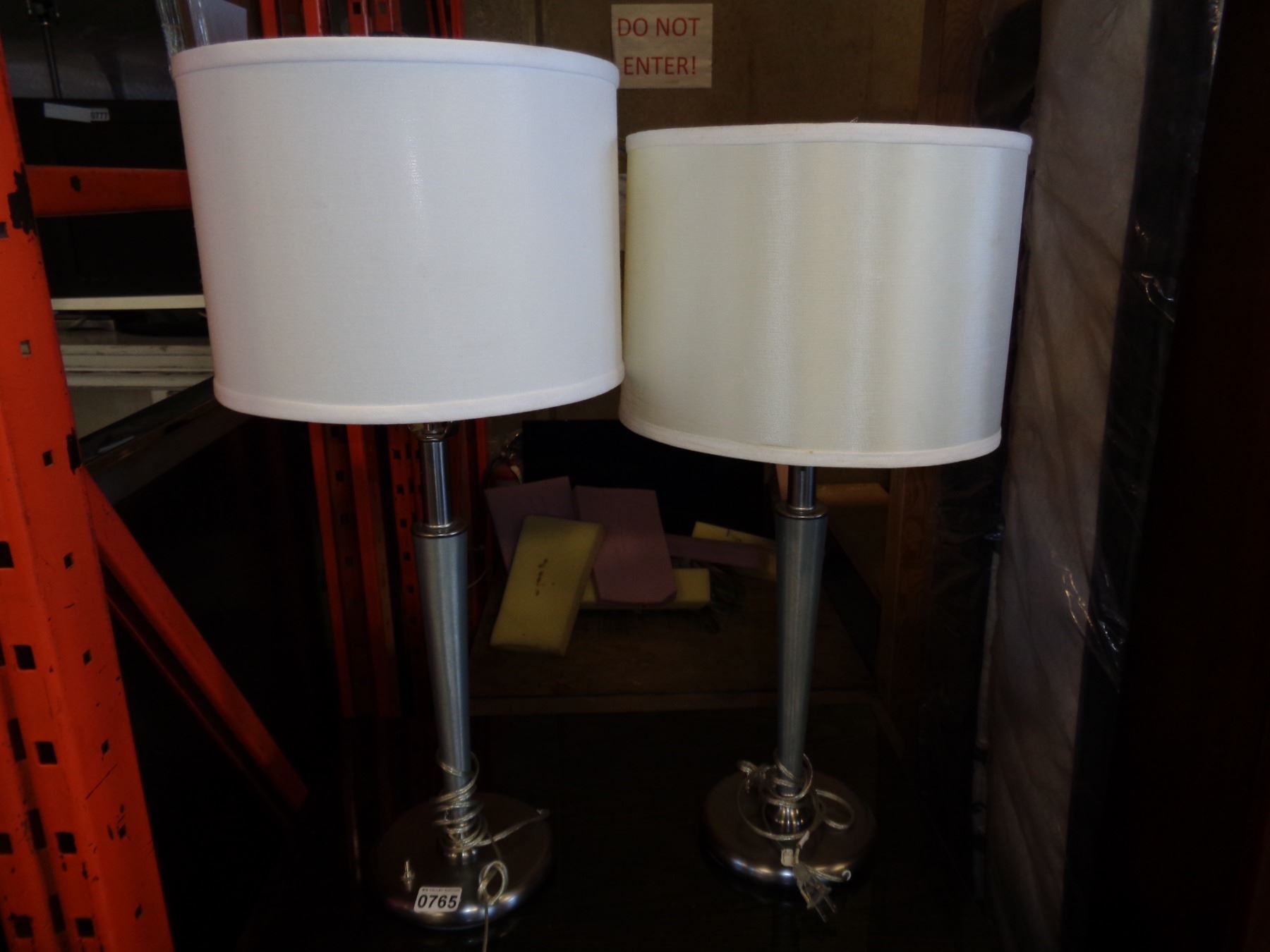 PAIR OF BRUSHED METAL TABLE LAMPS