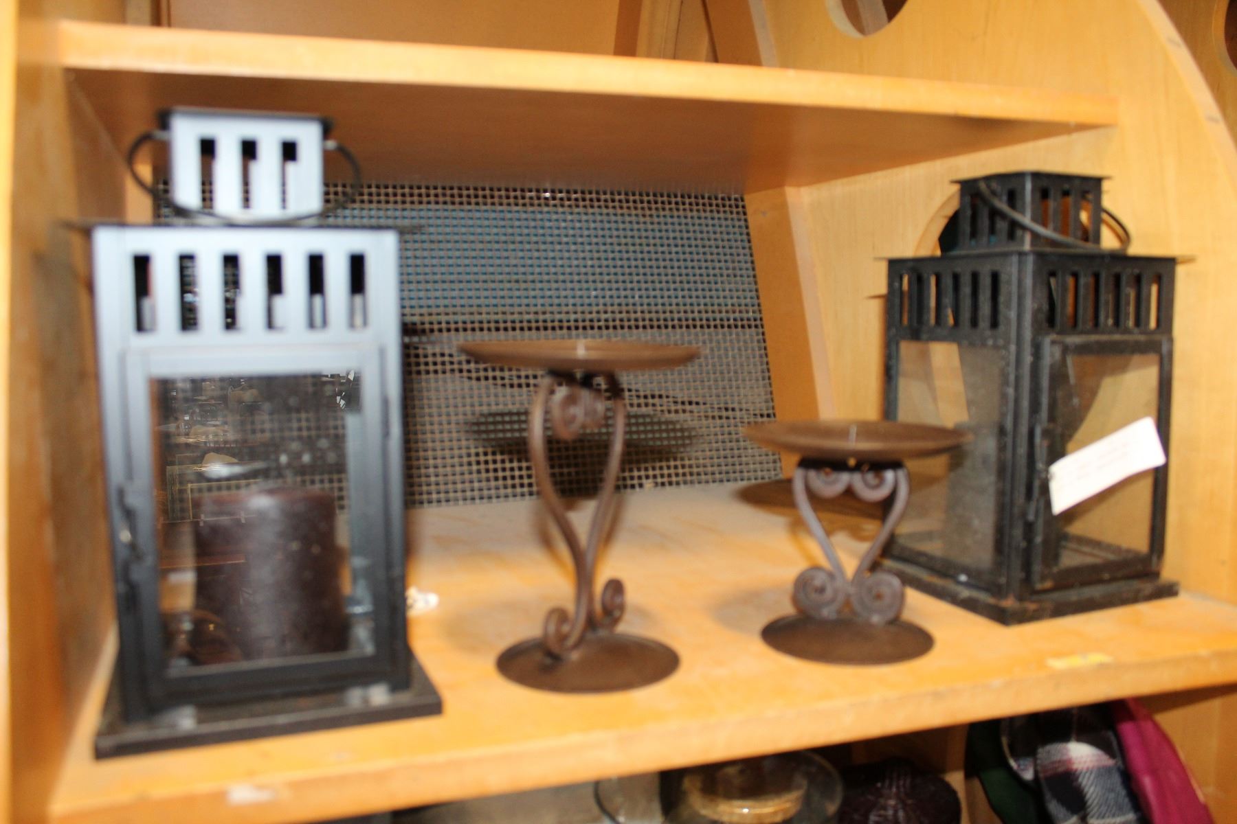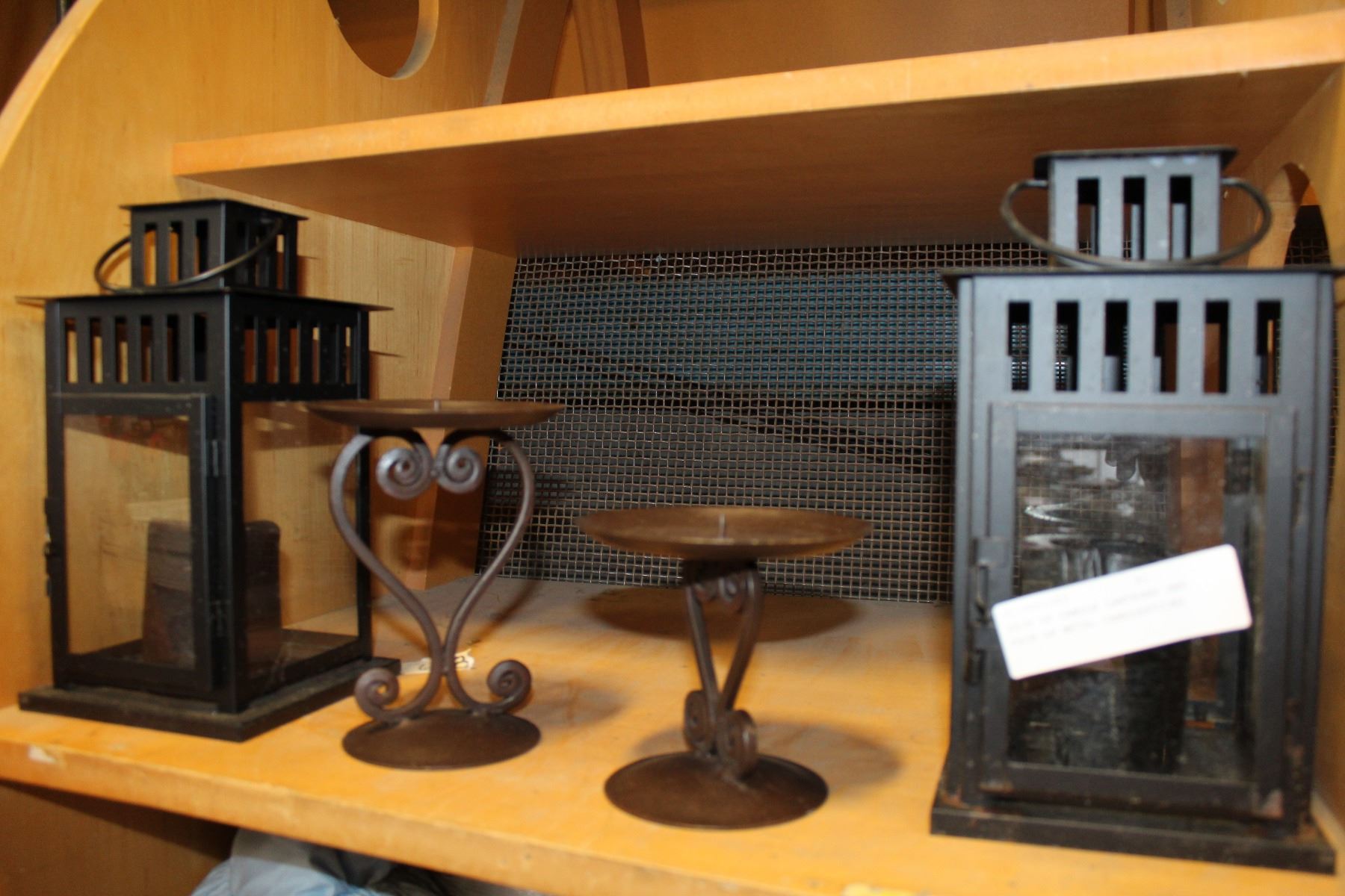 PAIR OF CANDLE LANTERNS AND PAIR OF METAL CANDLESTICKS