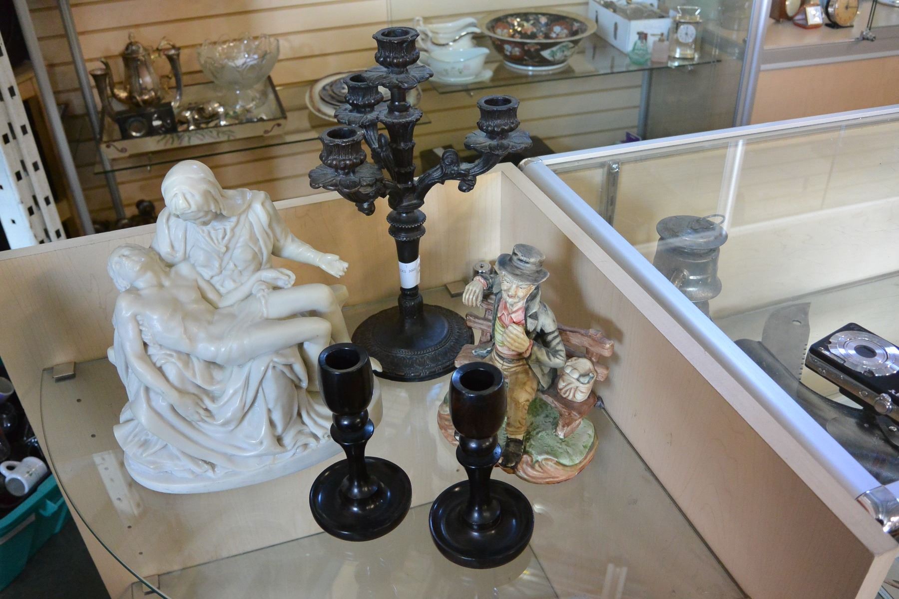 PAIR OF CANDLESTICKS AND CANDLEABRA AND FIGURES