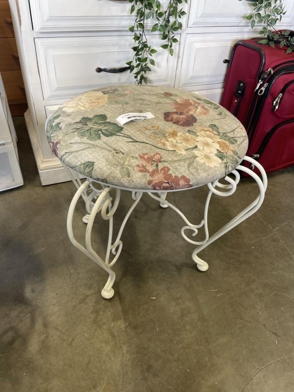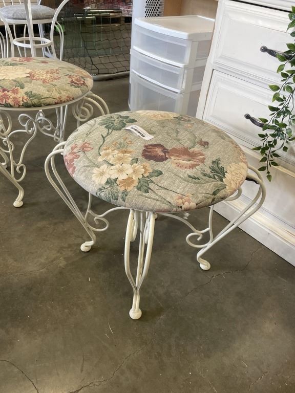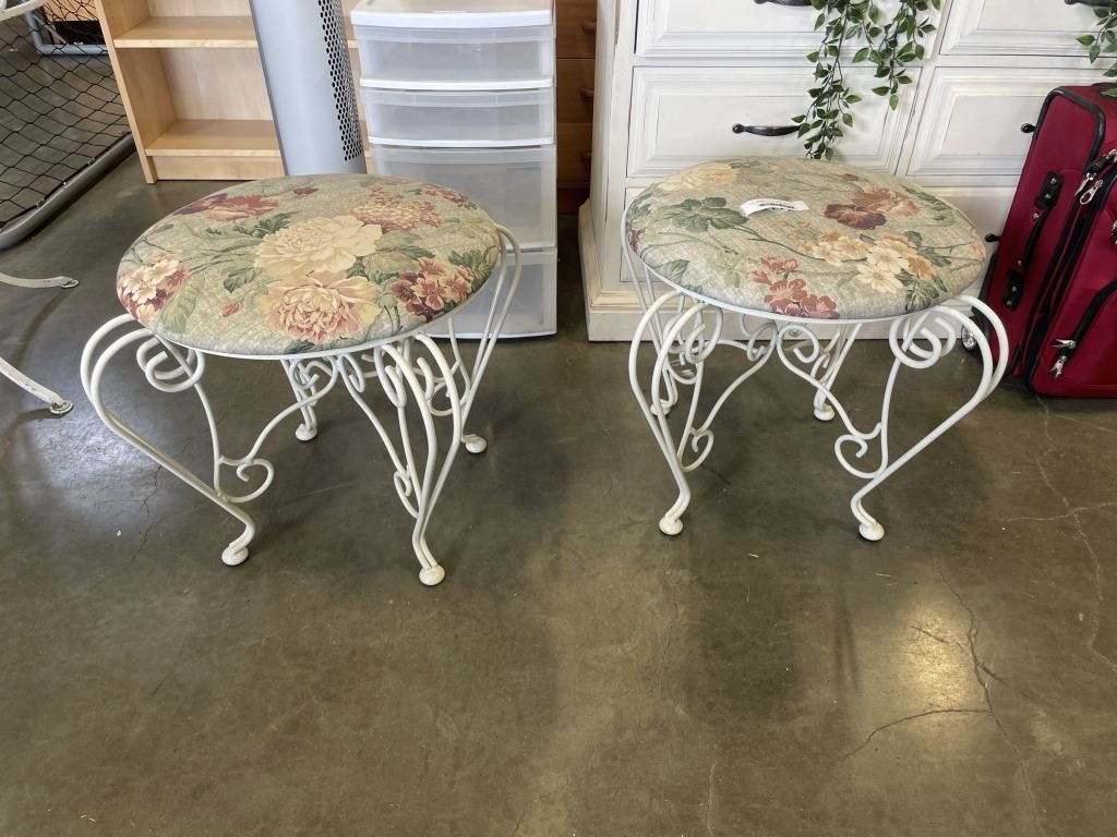 PAIR OF DECORATIVE WHITE METAL STOOLS