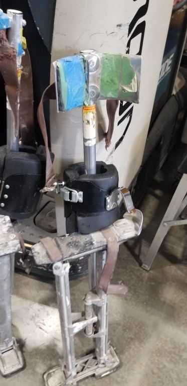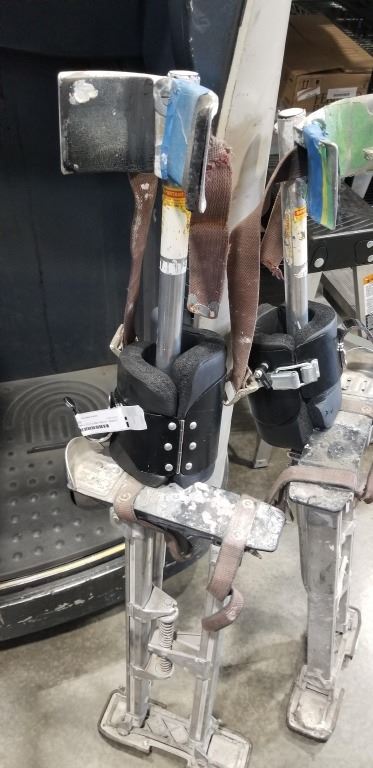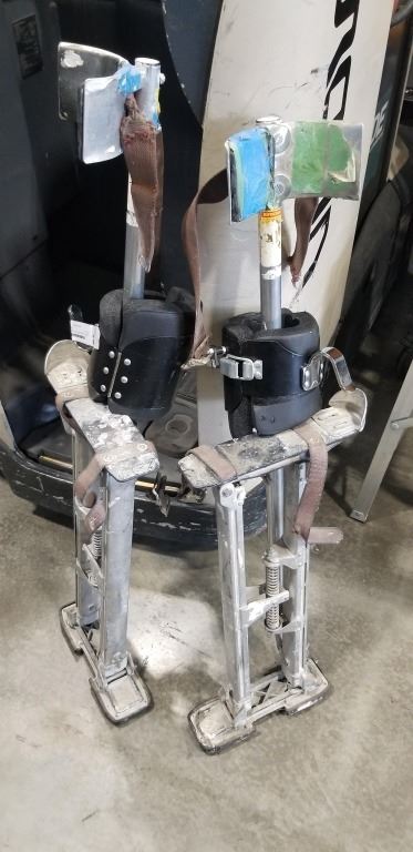 PAIR OF DRYWALL STILTS AND PAIR OF GRAVITY BOOTS