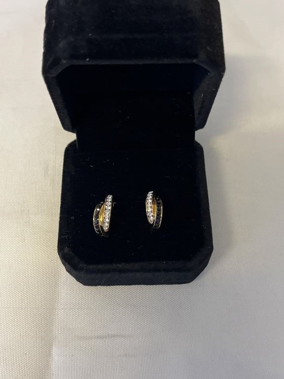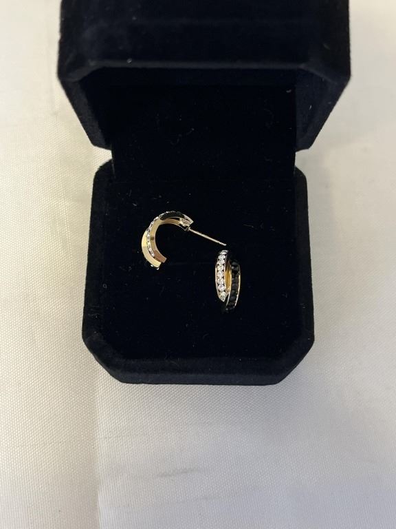 PAIR OF EARRINGS WITH BLACK AND CLEAR STONES MARKED 14K