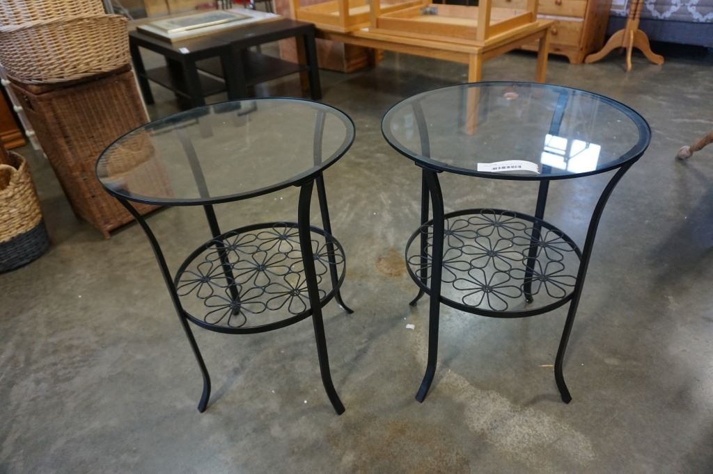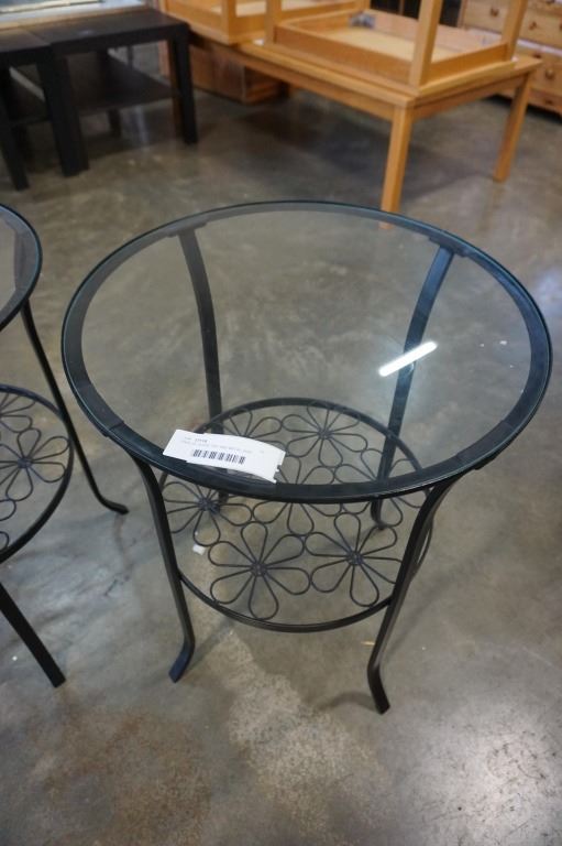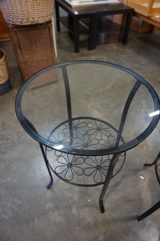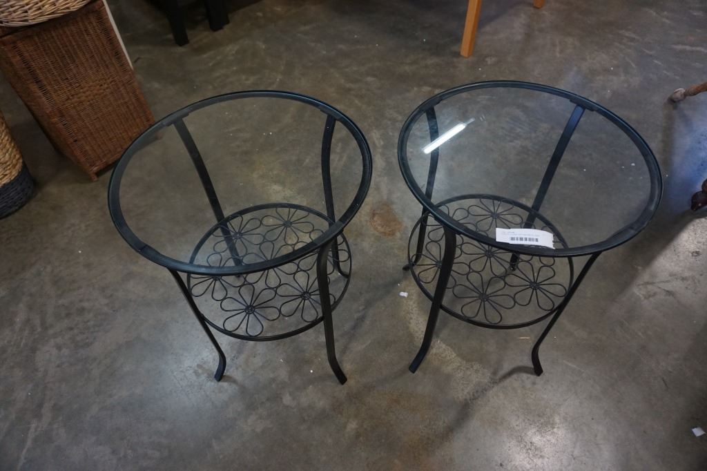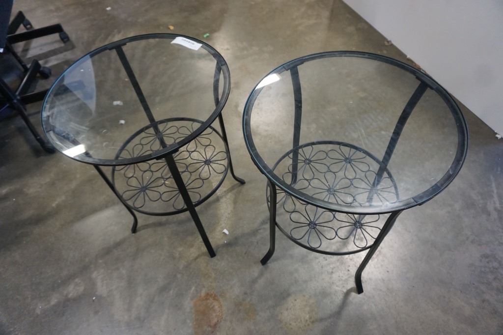 PAIR OF GLASS TOP AND METAL SIDE TABLES