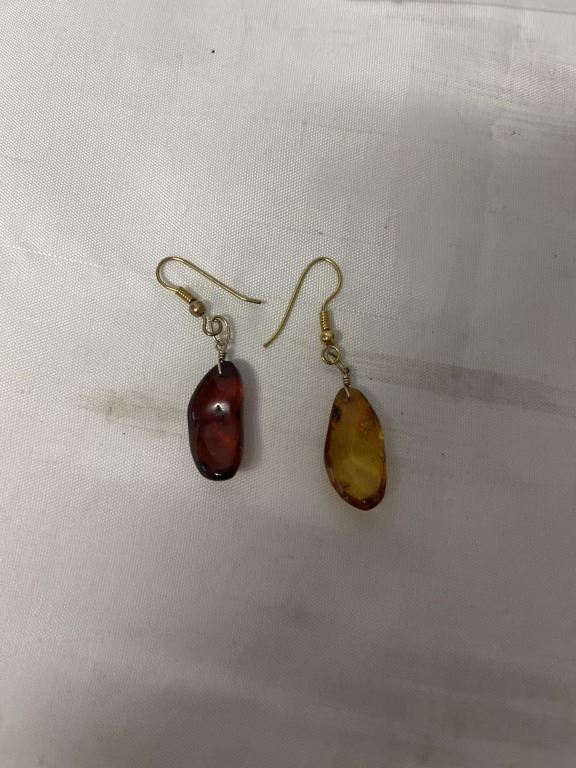 PAIR OF GOLD GENUINE BLATIC AMBER DANGLE EARRINGS