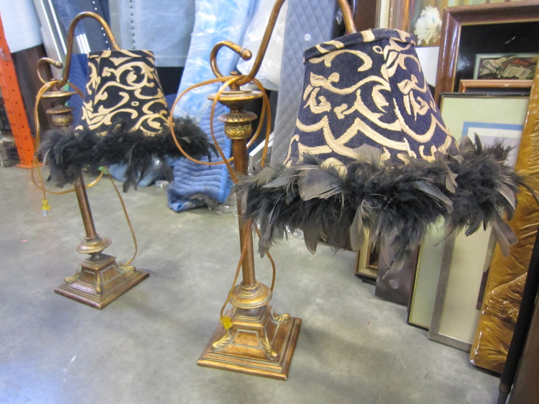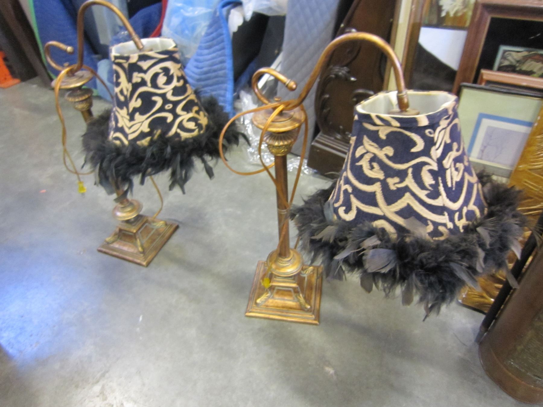 PAIR OF GOOSENECK FEATHERED LAMPS