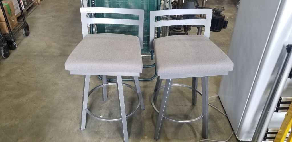 PAIR OF GREY SWIVEL BARSTOOLS