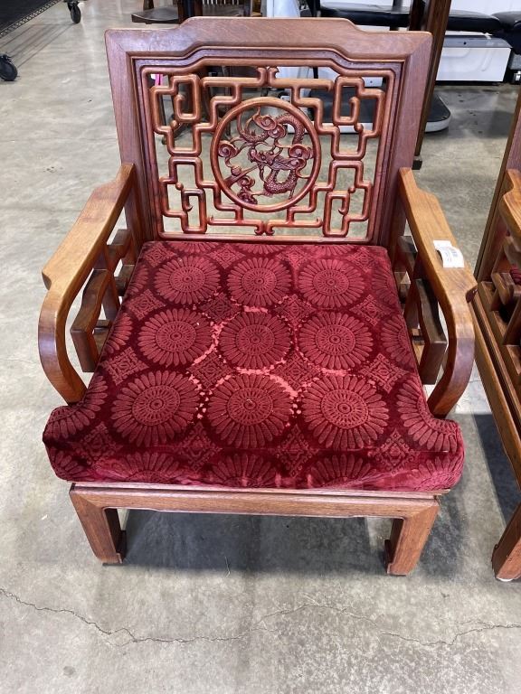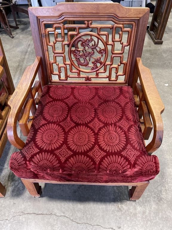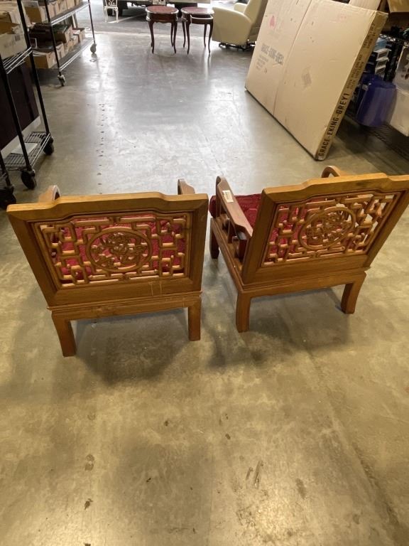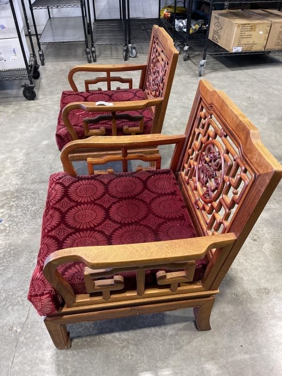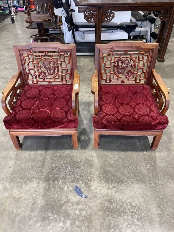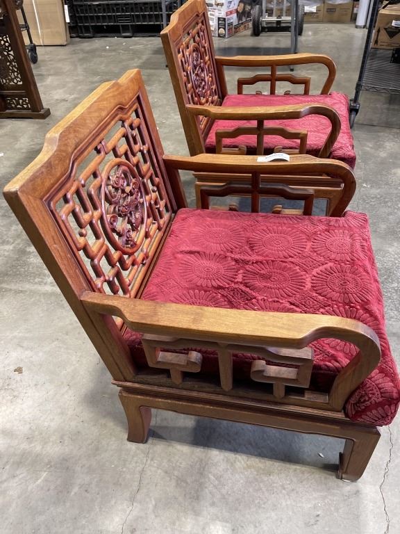 PAIR OF HAND CARVED ROSEWOOD ARMCHAIRS