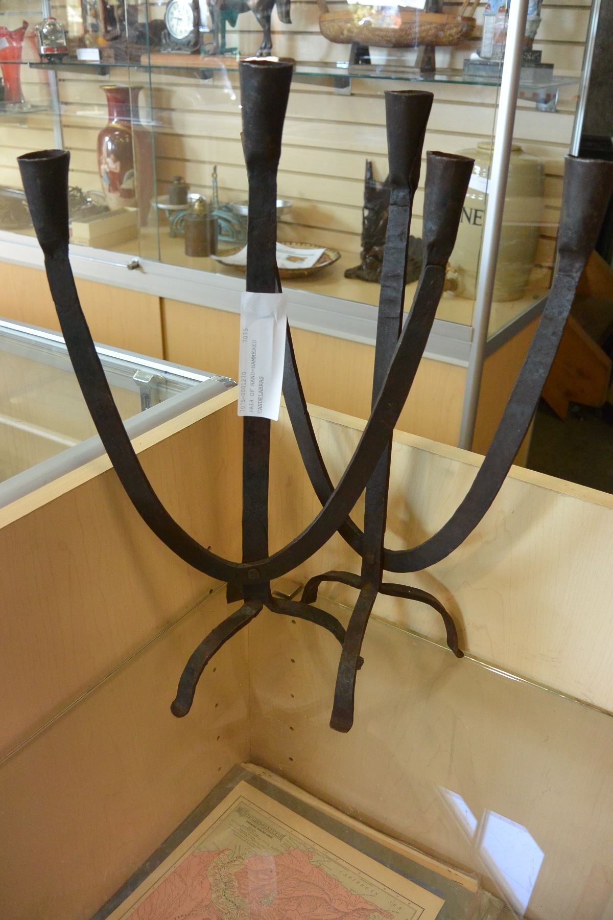 PAIR OF HAND-HAMMERED CANDELABRAS