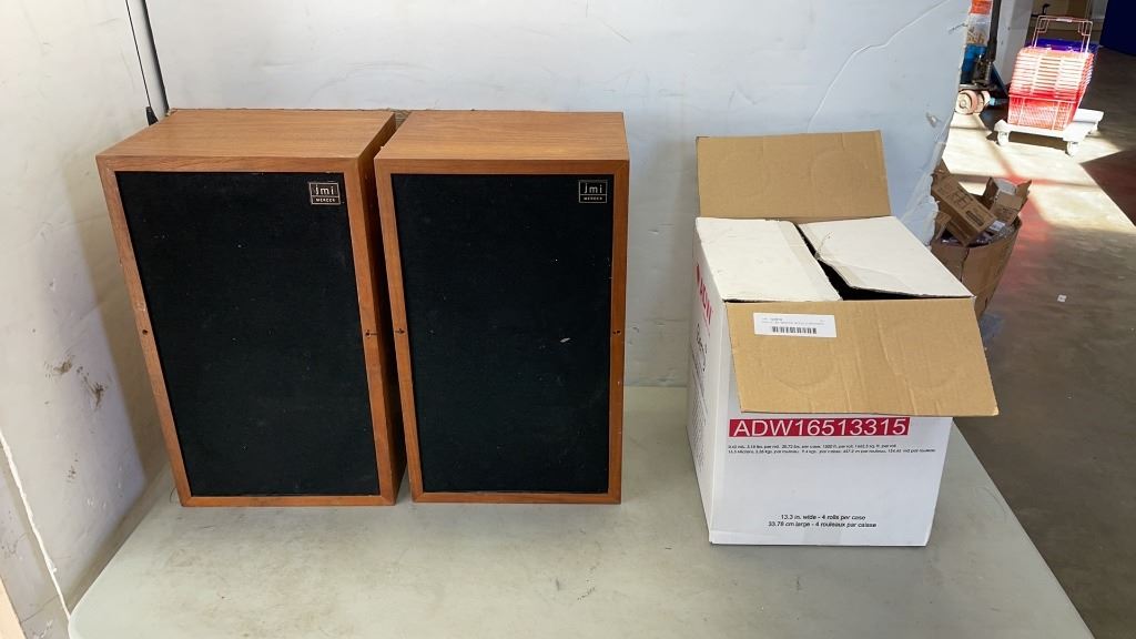 PAIR OF JMI MERCER MODEL 8 SPEAKERS AND DELL MODEL A525 SPEAKERS ALL WORKING