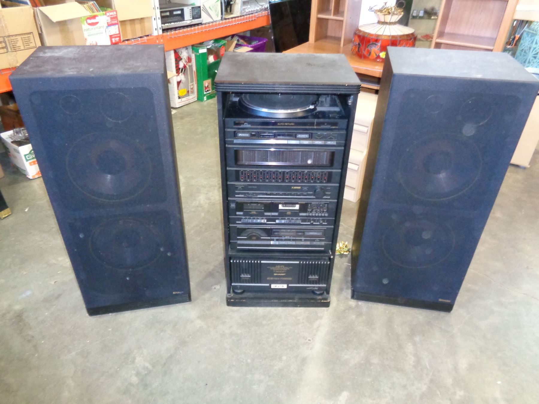 PAIR OF LARGE SHARP CP-7700 SPEAKERS & SHARP 7700CD SYSTEM