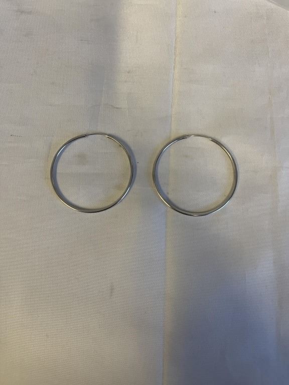 PAIR OF LARGE STERLING SILVER HOOP EARRINGS