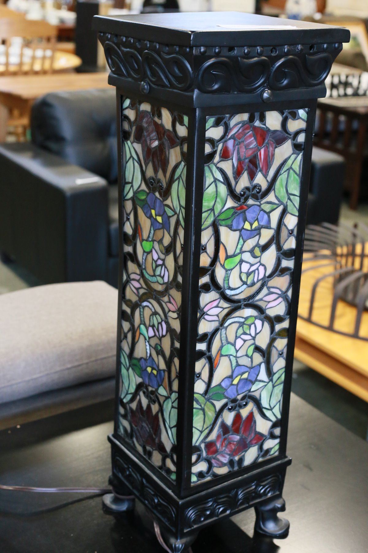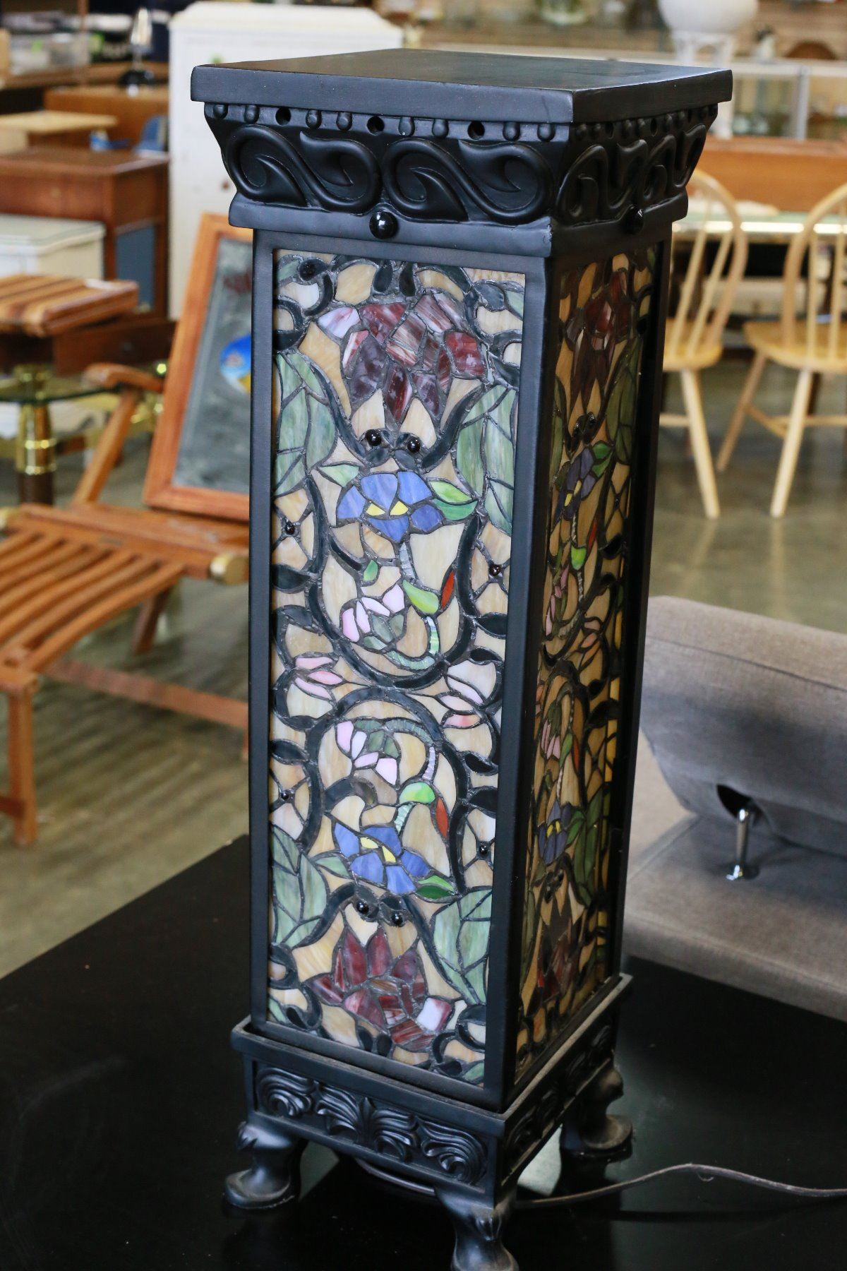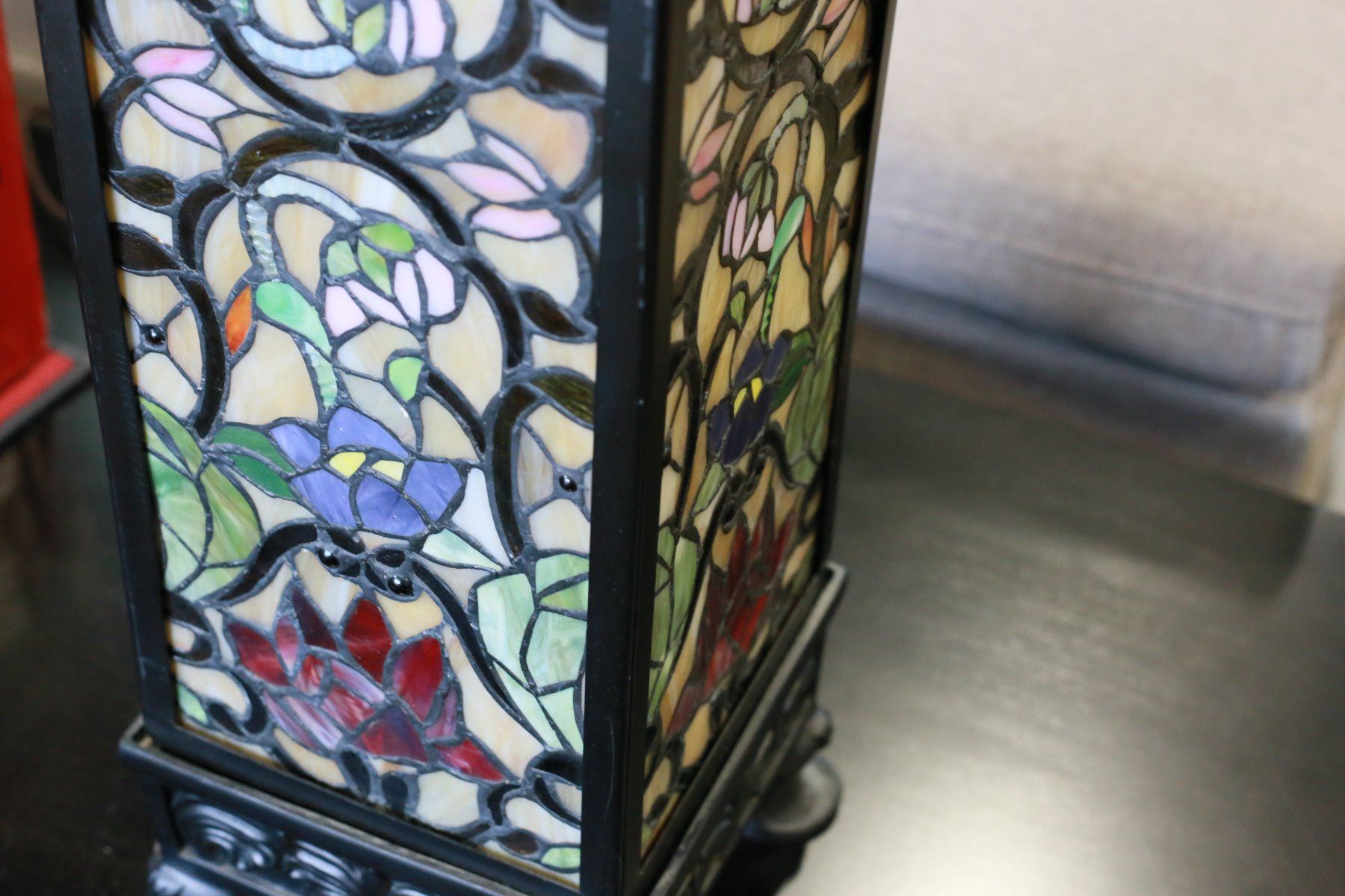 PAIR OF LEADED GLASS PEDESTLE LAMPS