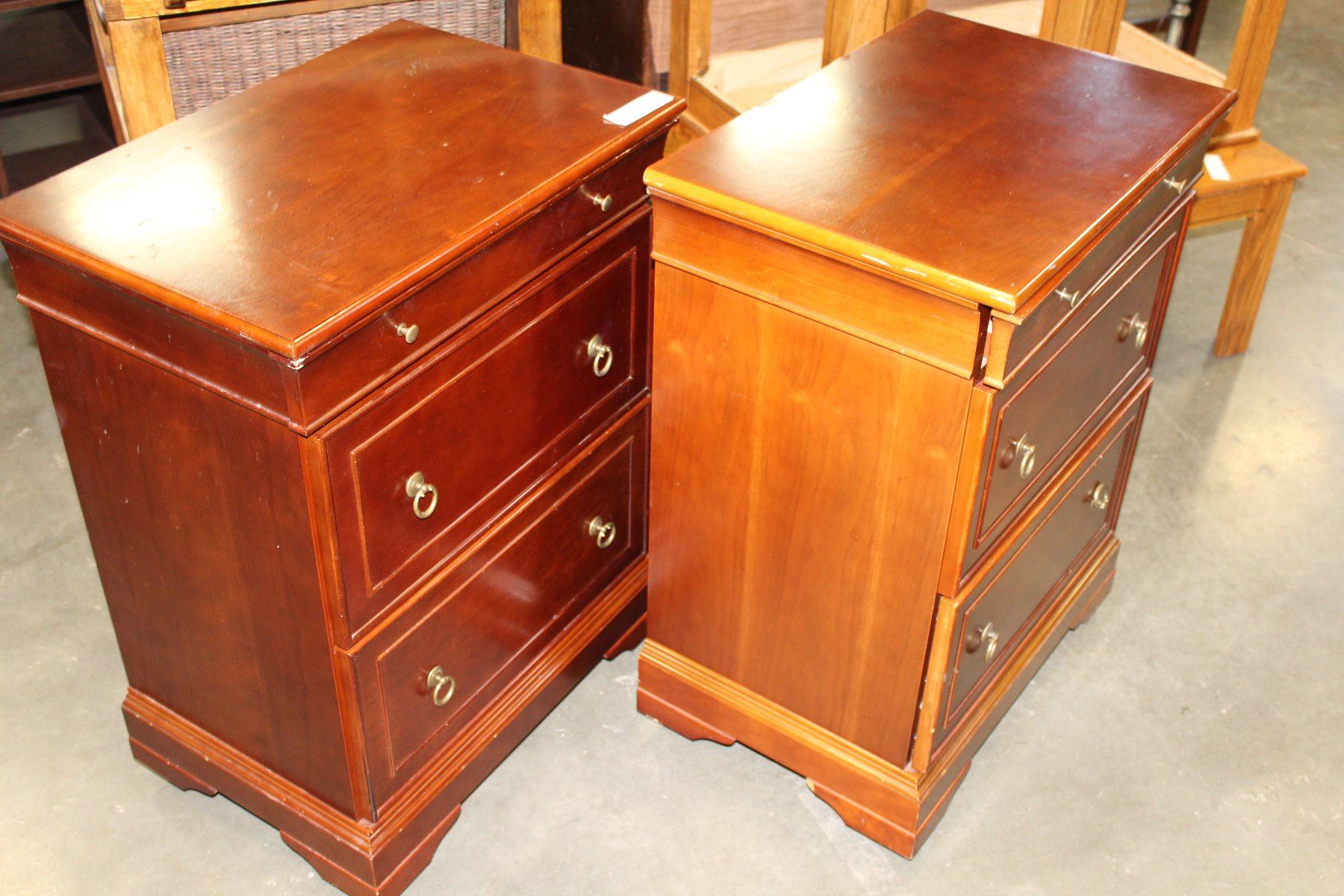 PAIR OF MAHOGANY FINISH BOMBAY ROLLING ENDTABLES