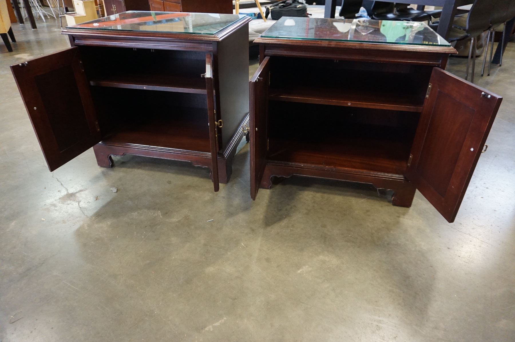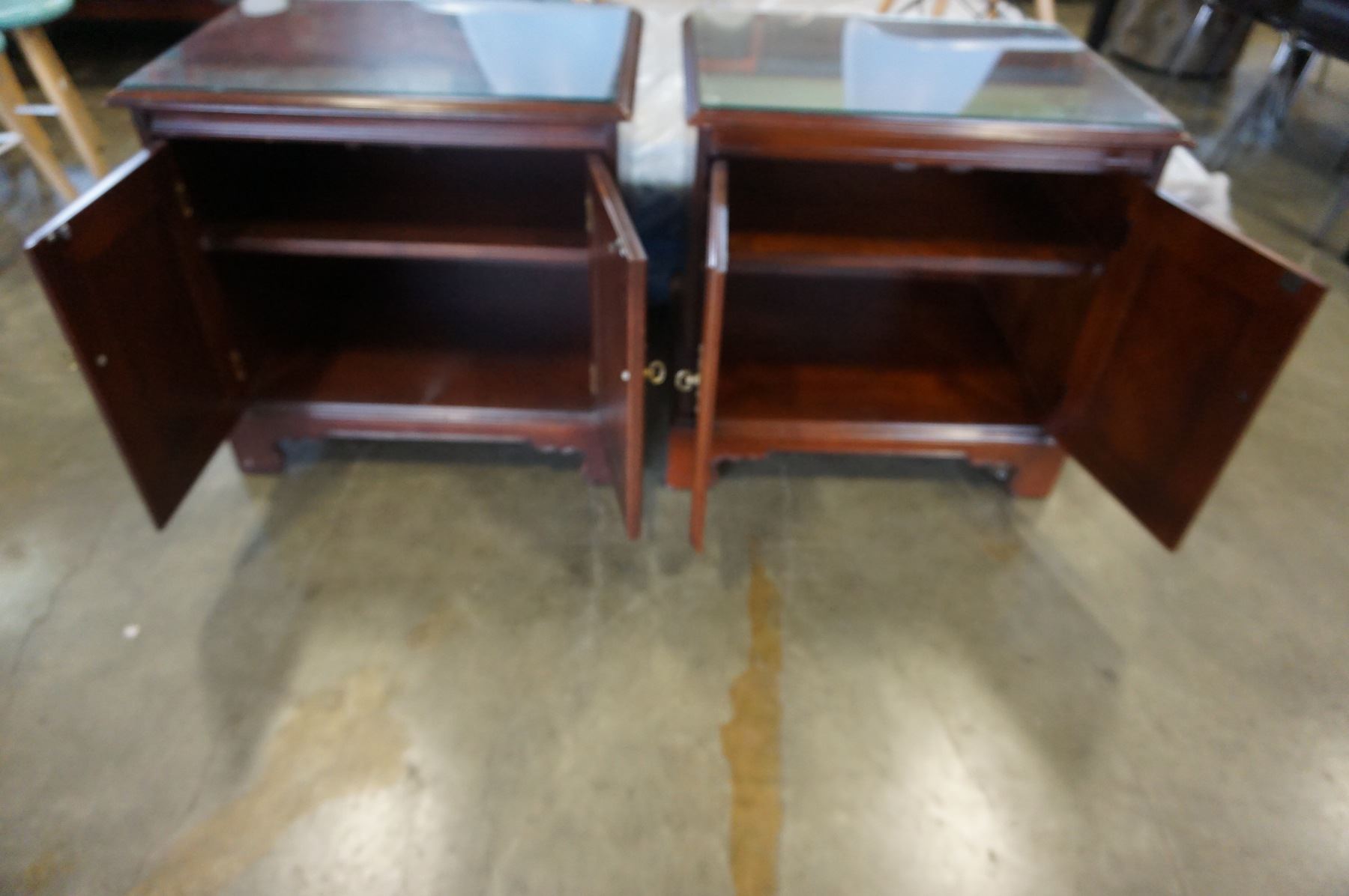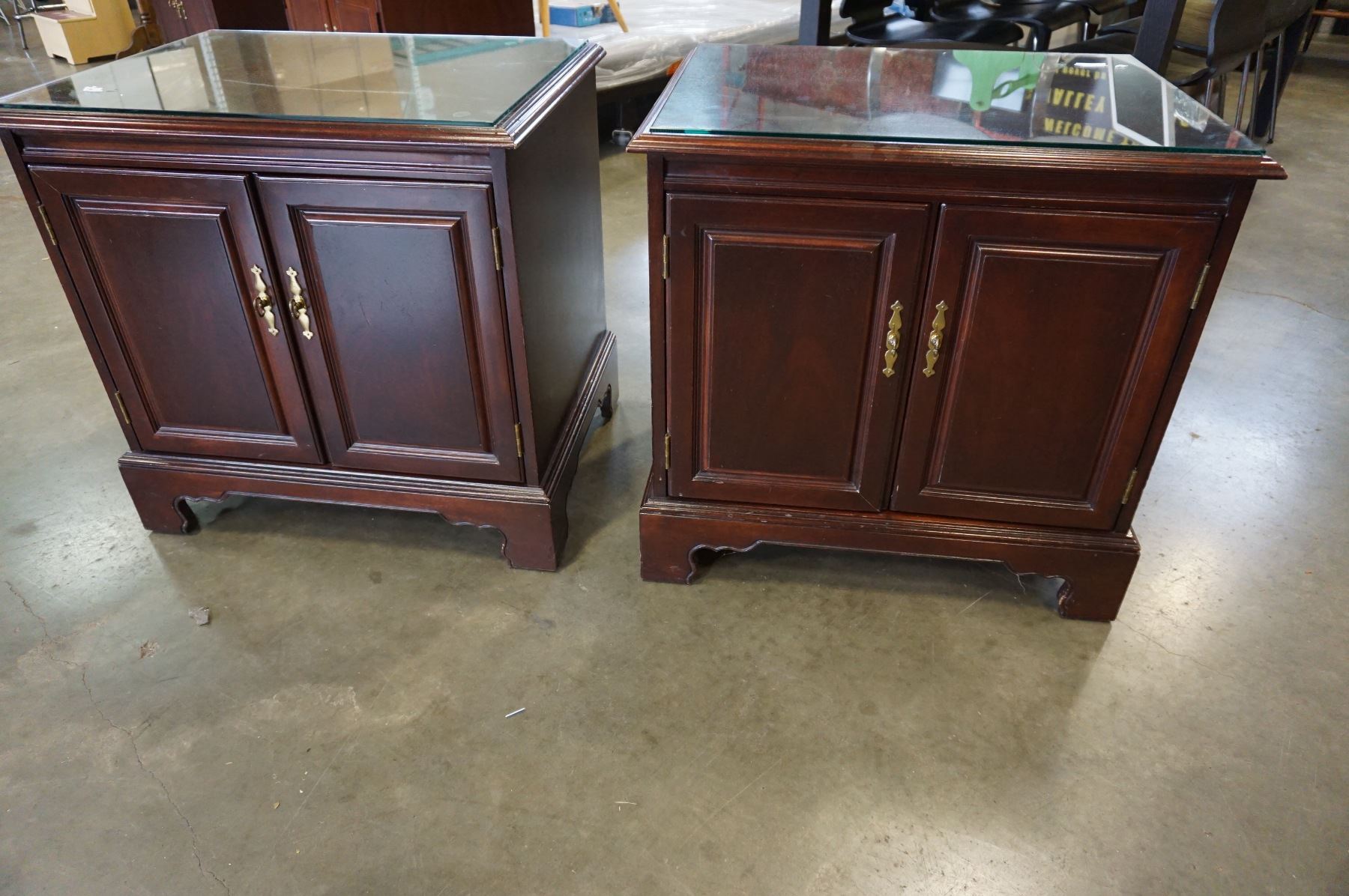 PAIR OF MAHOGANY GLASS TOP NIGHT STANDS