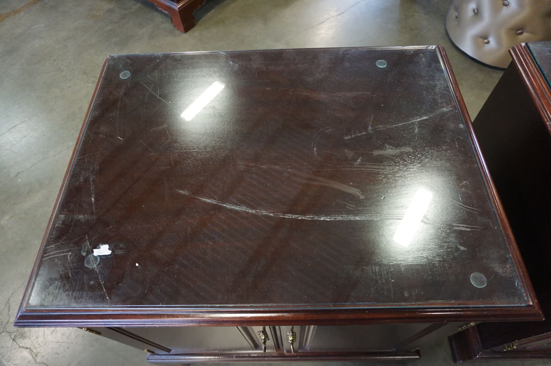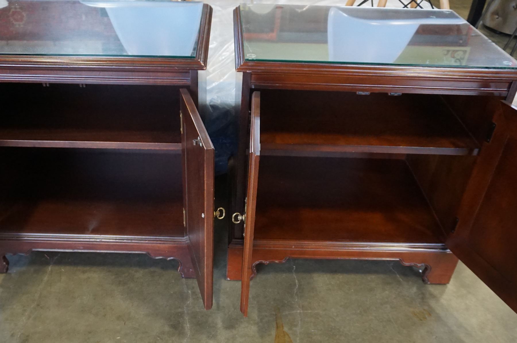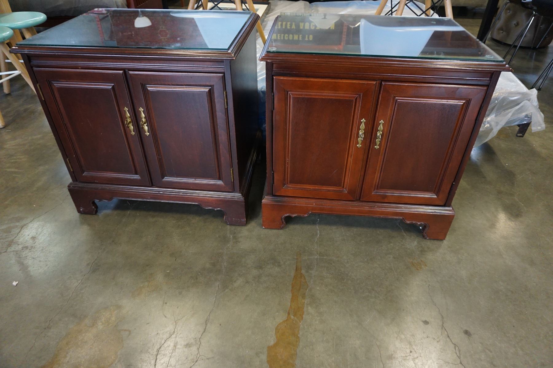 PAIR OF MAHOGANY GLASS TOP NIGHT STANDS