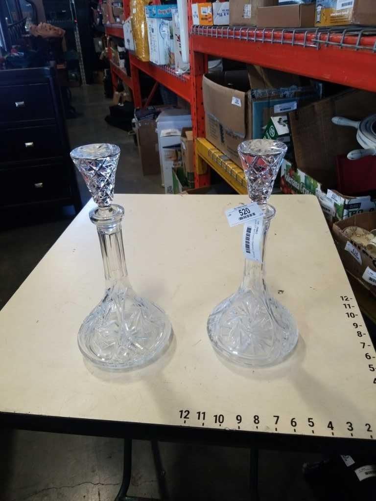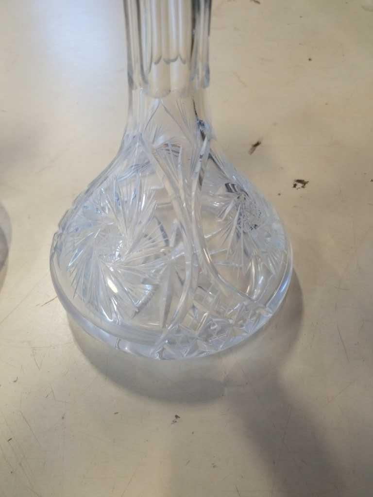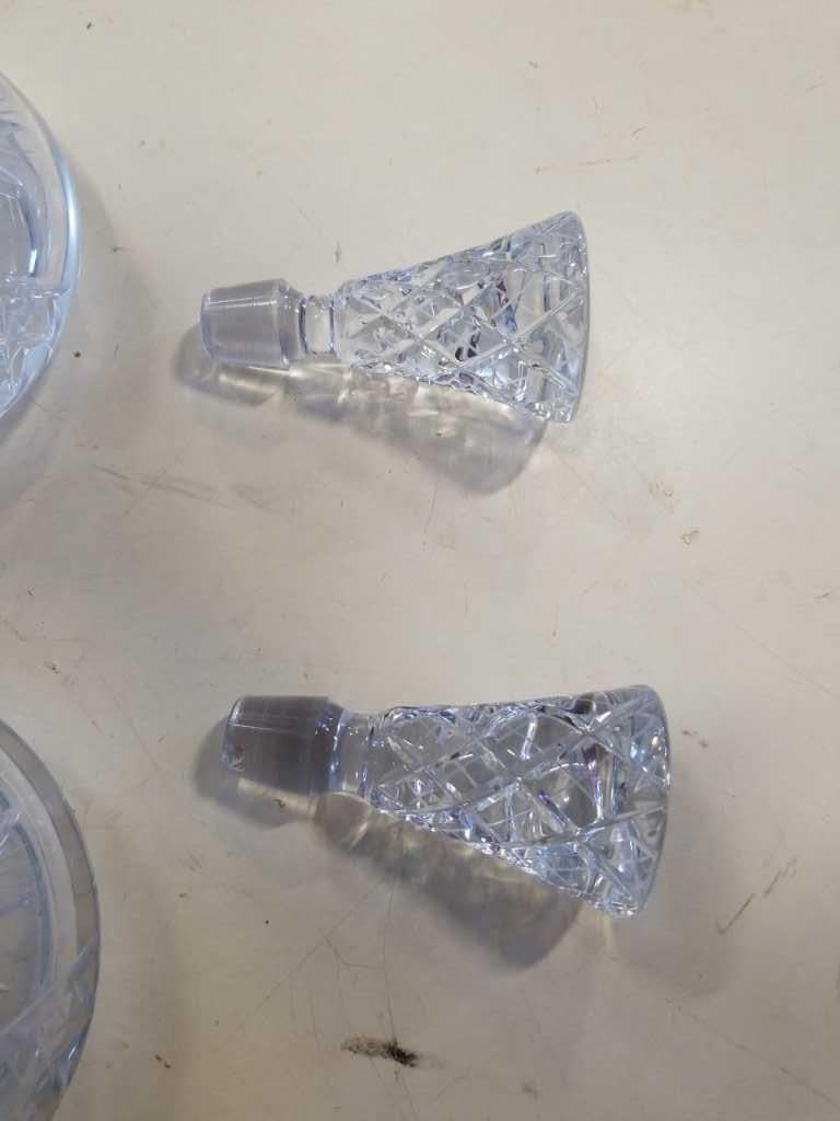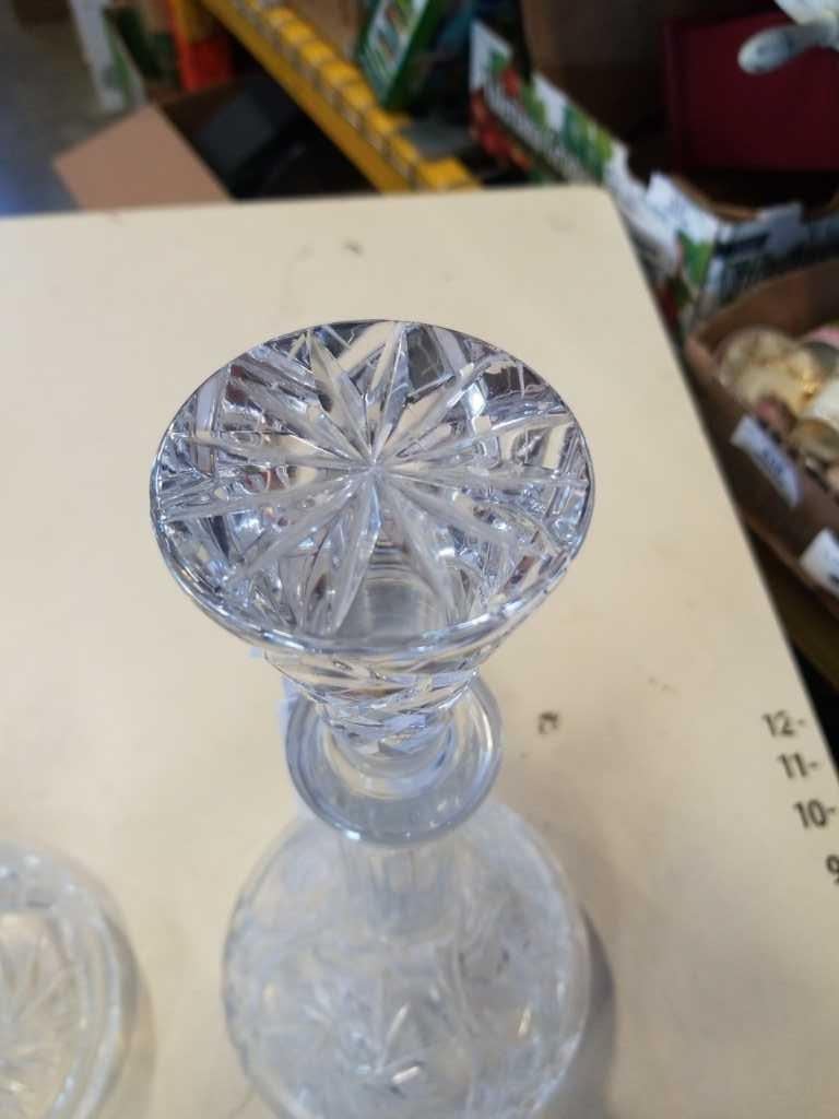 PAIR OF MATCHING PINWHEEL CRYSTAL HEAVY DECANTERS