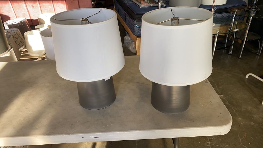 PAIR OF METALLIC TABLE LAMPS WITH SHADES