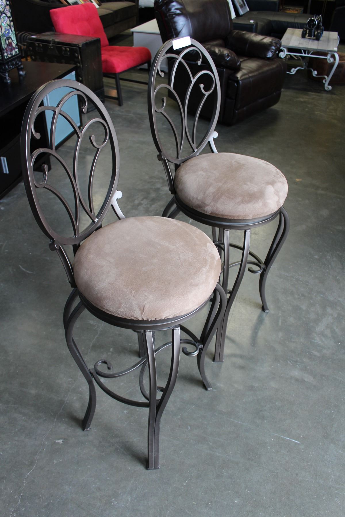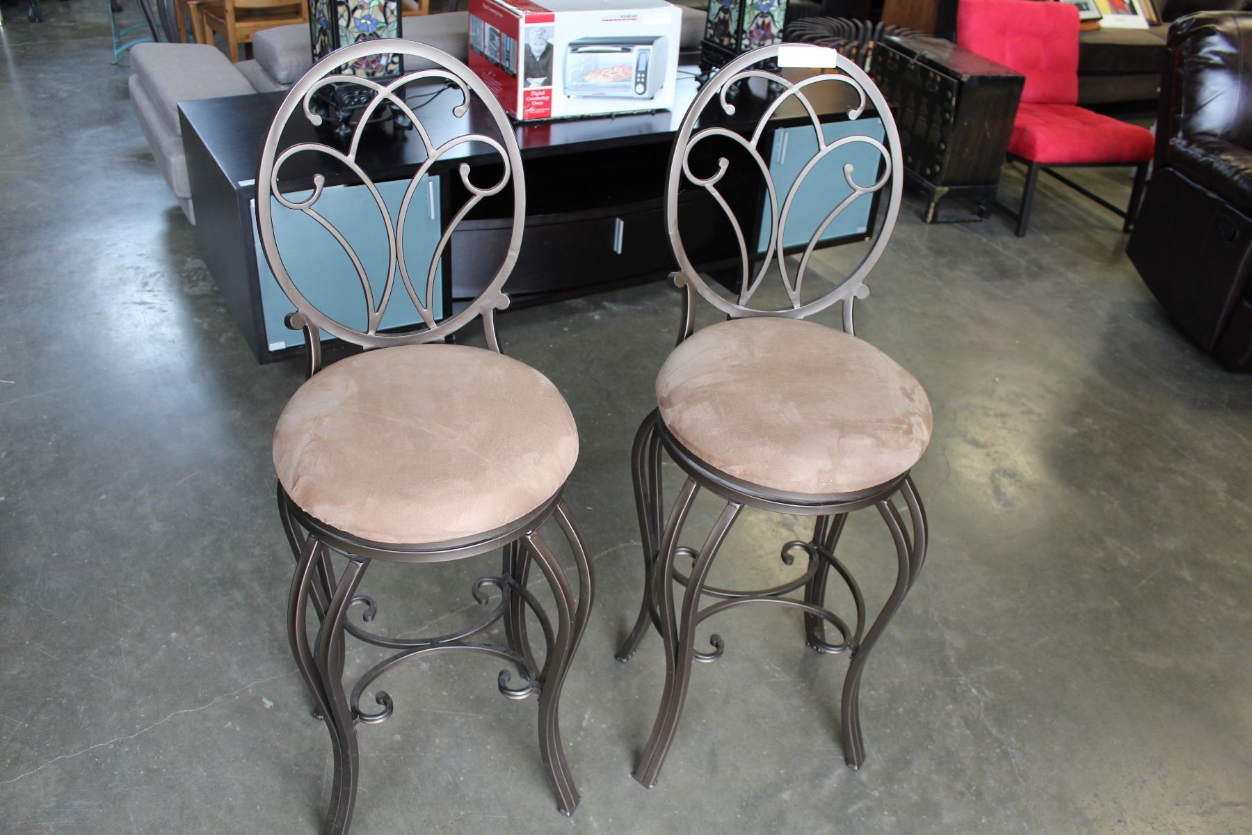 PAIR OF MICROFIBER AND METAL BAR STOOLS