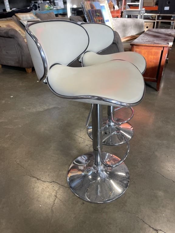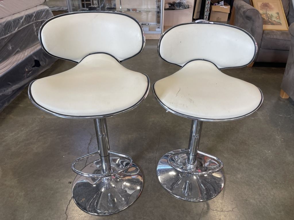 PAIR OF MODERN BAR STOOLS, ONE HAS A SPLIT