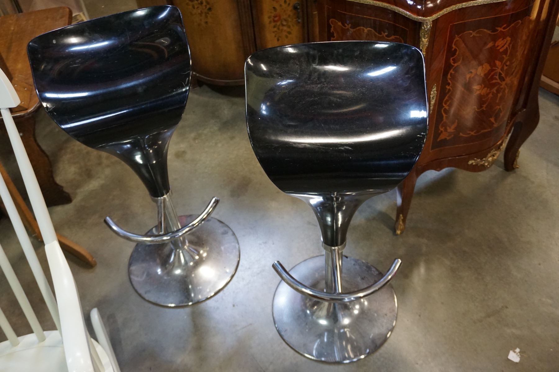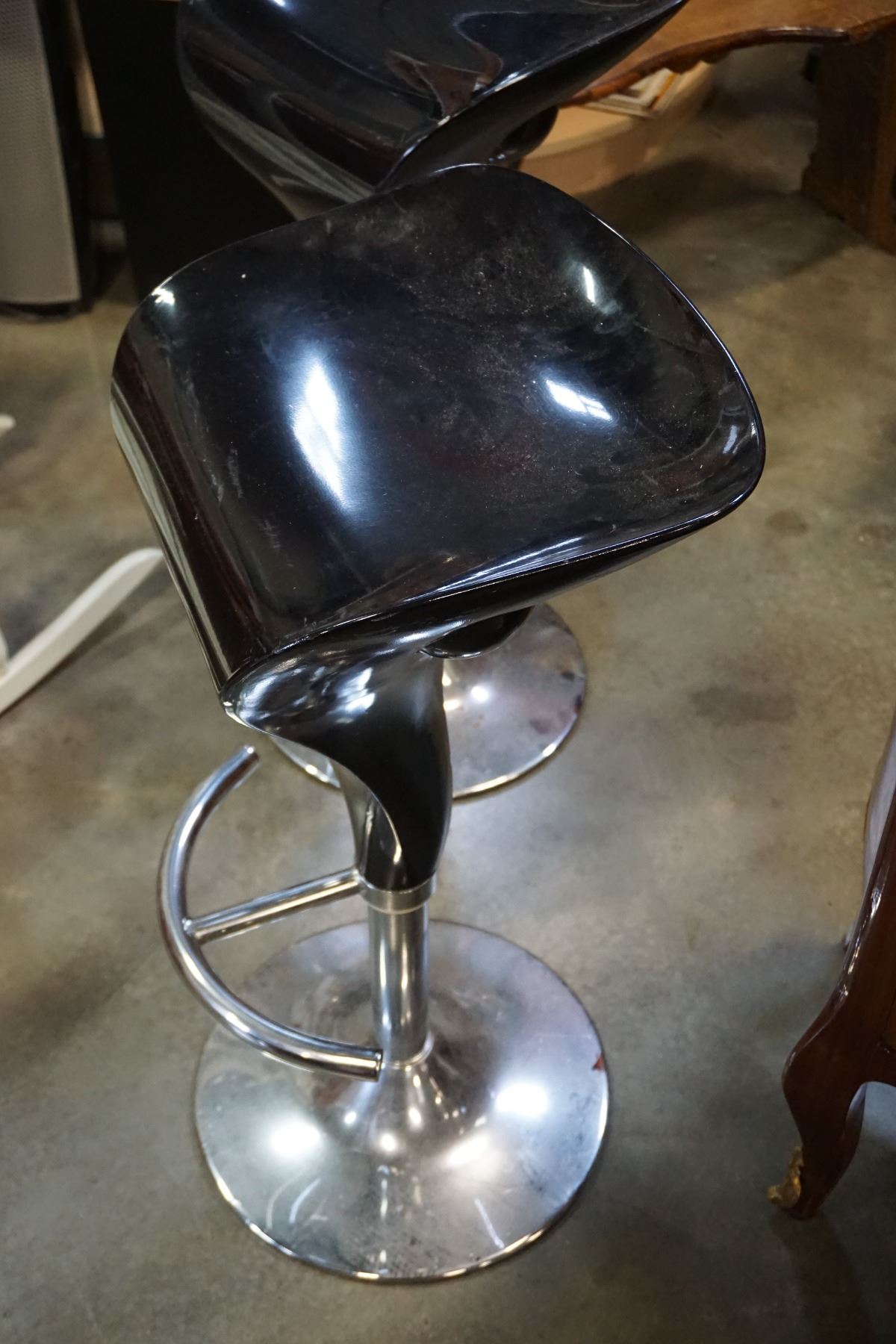 PAIR OF MODERN BLACK AND CHROME BARSTOOLS
