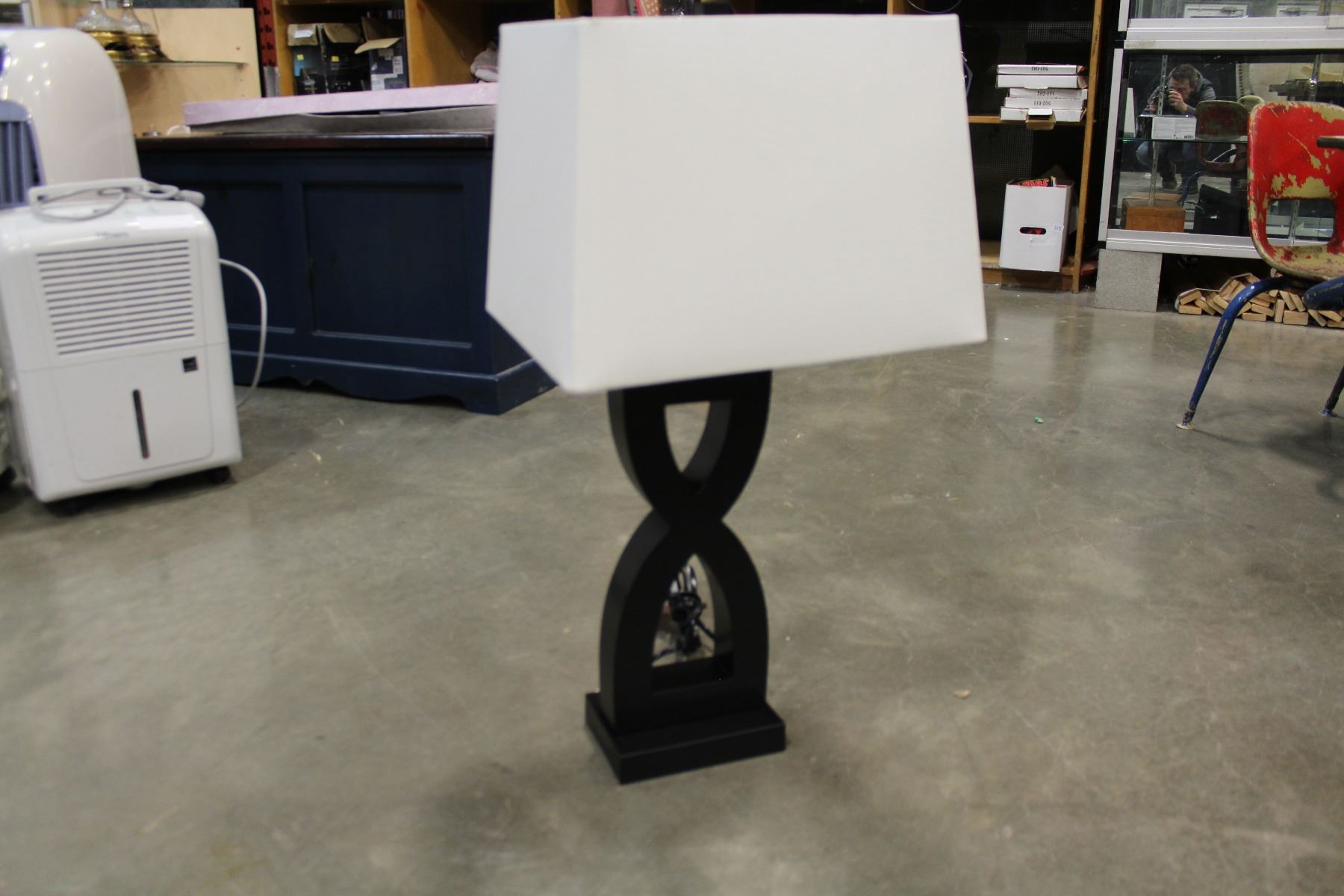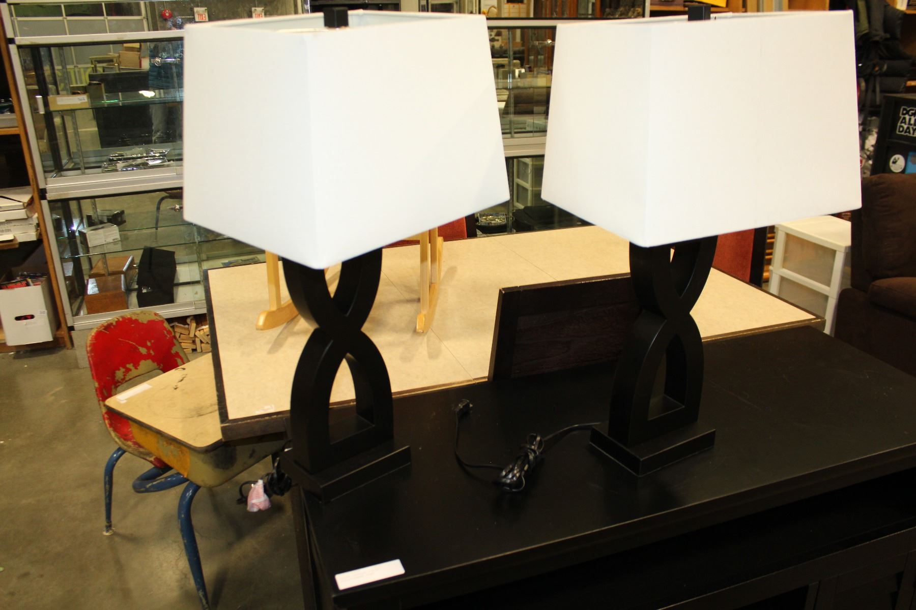 PAIR OF MODERN ESPRESSO FINISH TABLE LAMPS WITH SHADES
