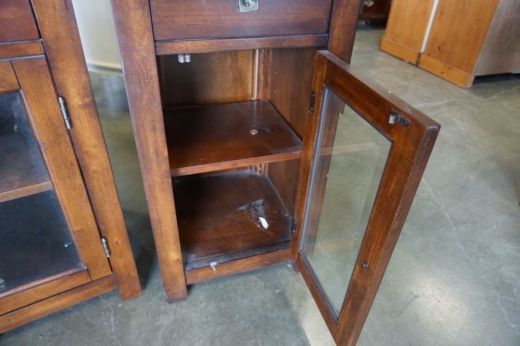 PAIR OF MODERN GLASS DOOR ENDTABLES 15 X 15 INCHES X 32 TALL