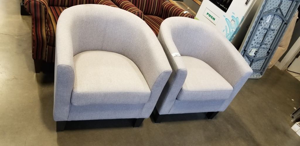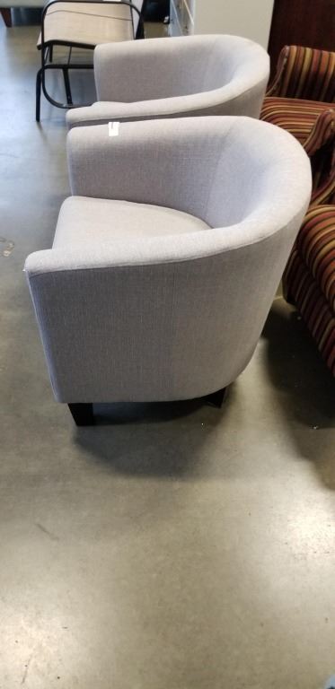 PAIR OF MODERN GREY TUB CHAIRS, IN GOOD CONDITION