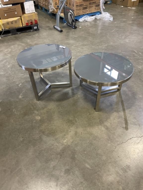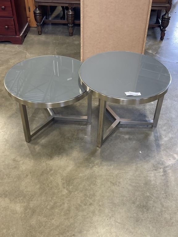 PAIR OF MODERN NESTING ROUND GLASS TOP ENDTABLES