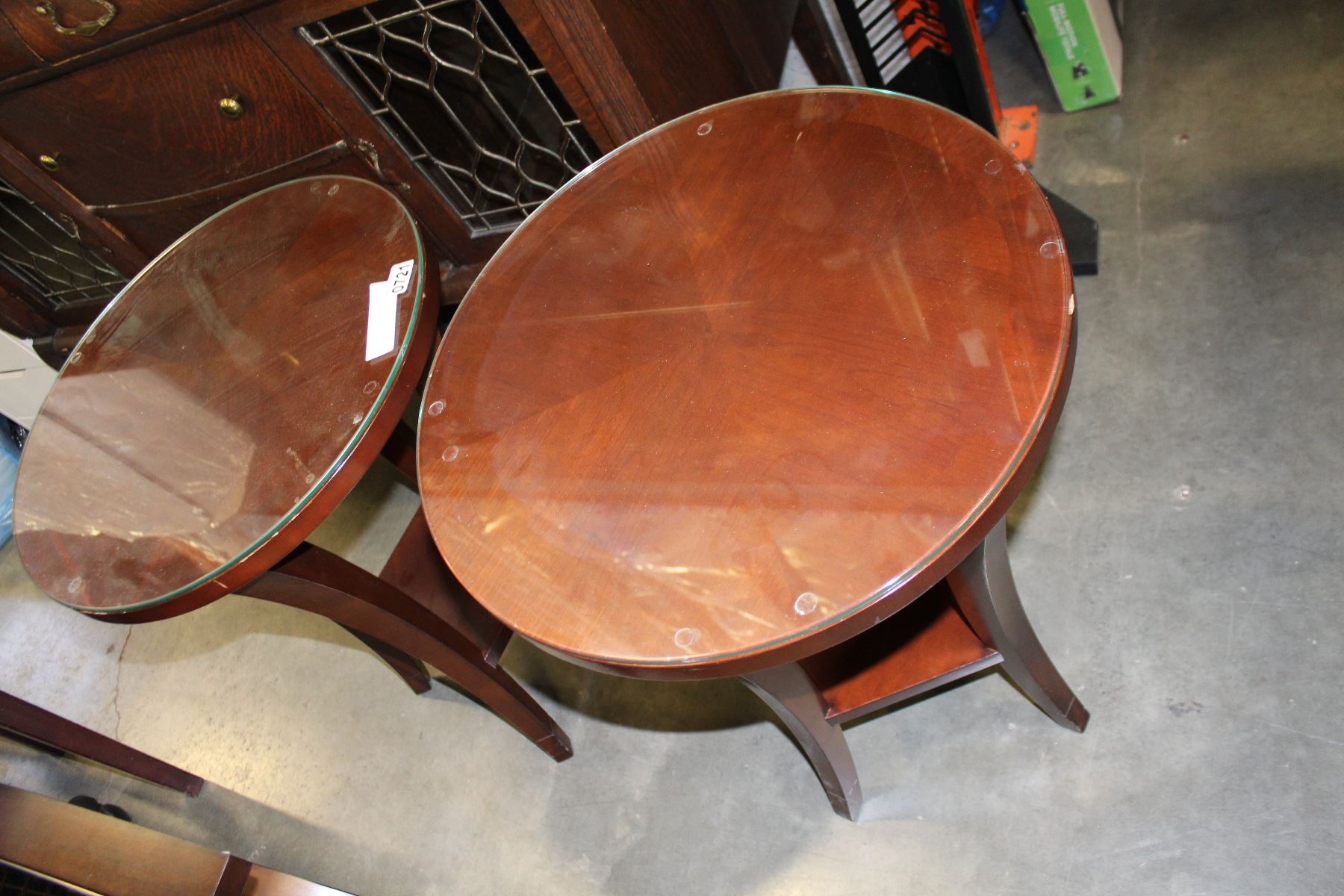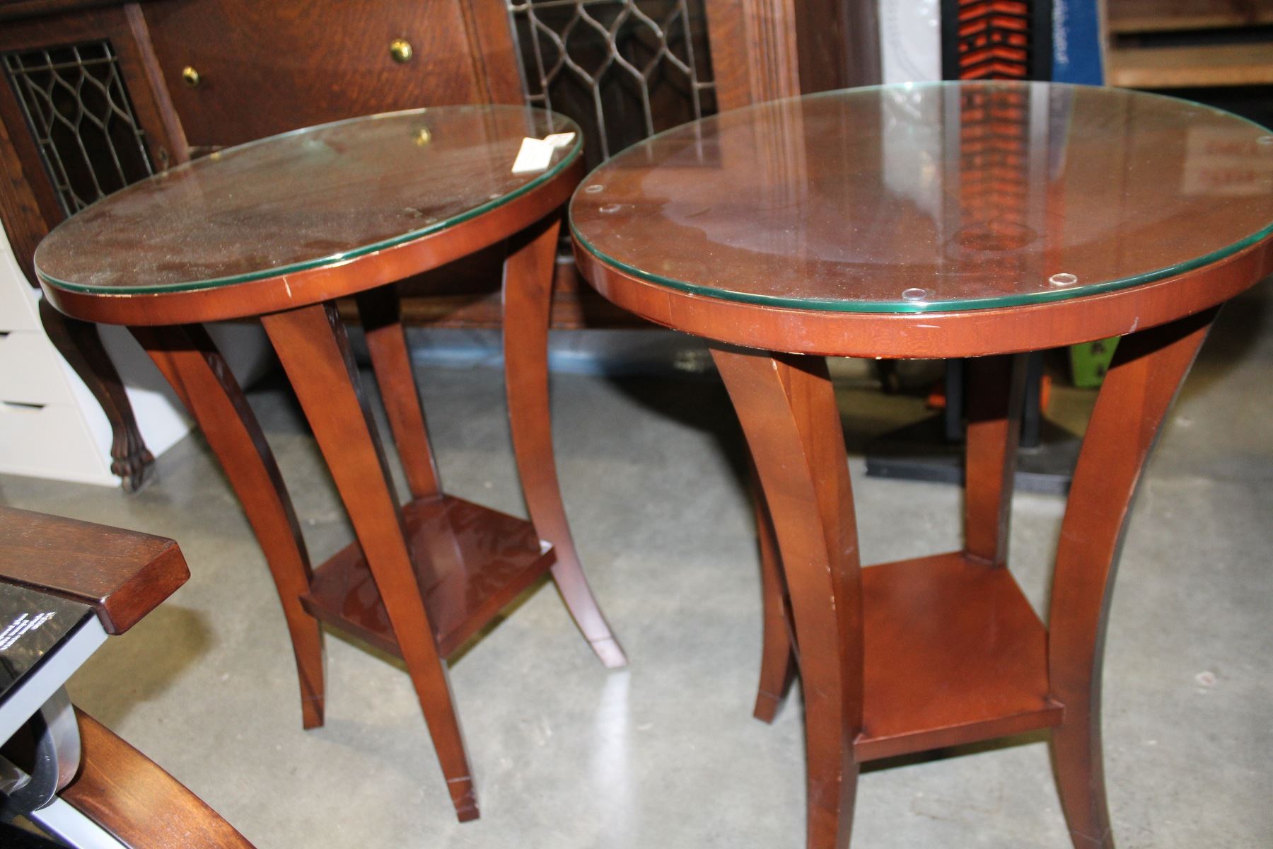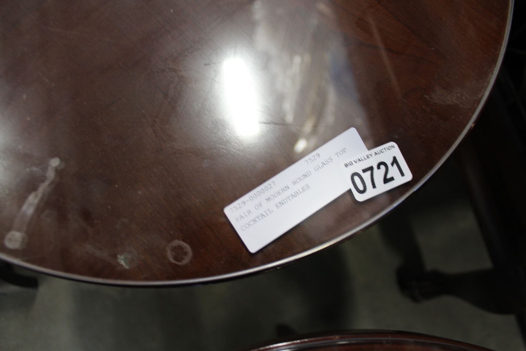 PAIR OF MODERN ROUND GLASS TOP COCKTAIL ENDTABLES