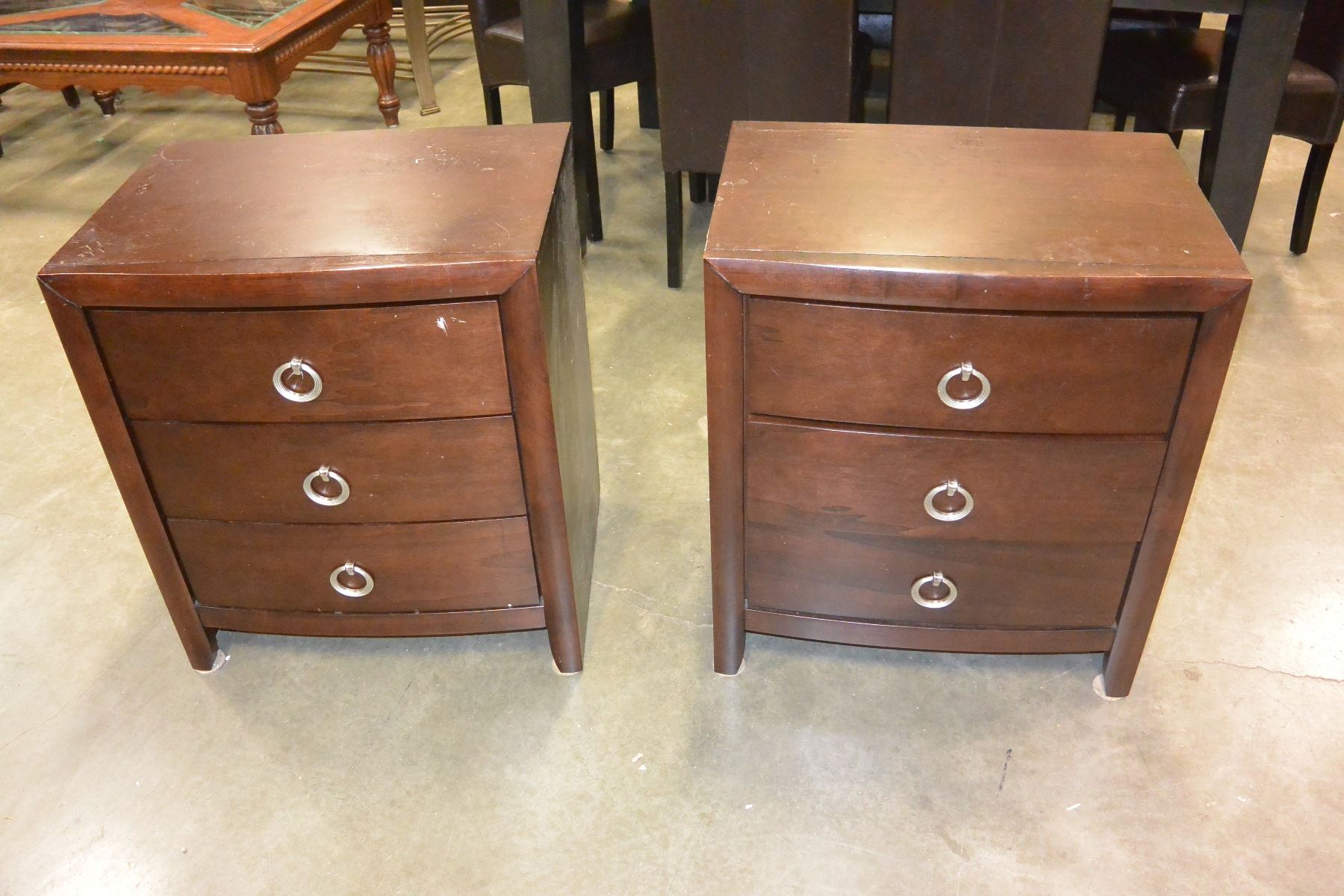 PAIR OF MODERN THREE DRAWER ENDTABLES