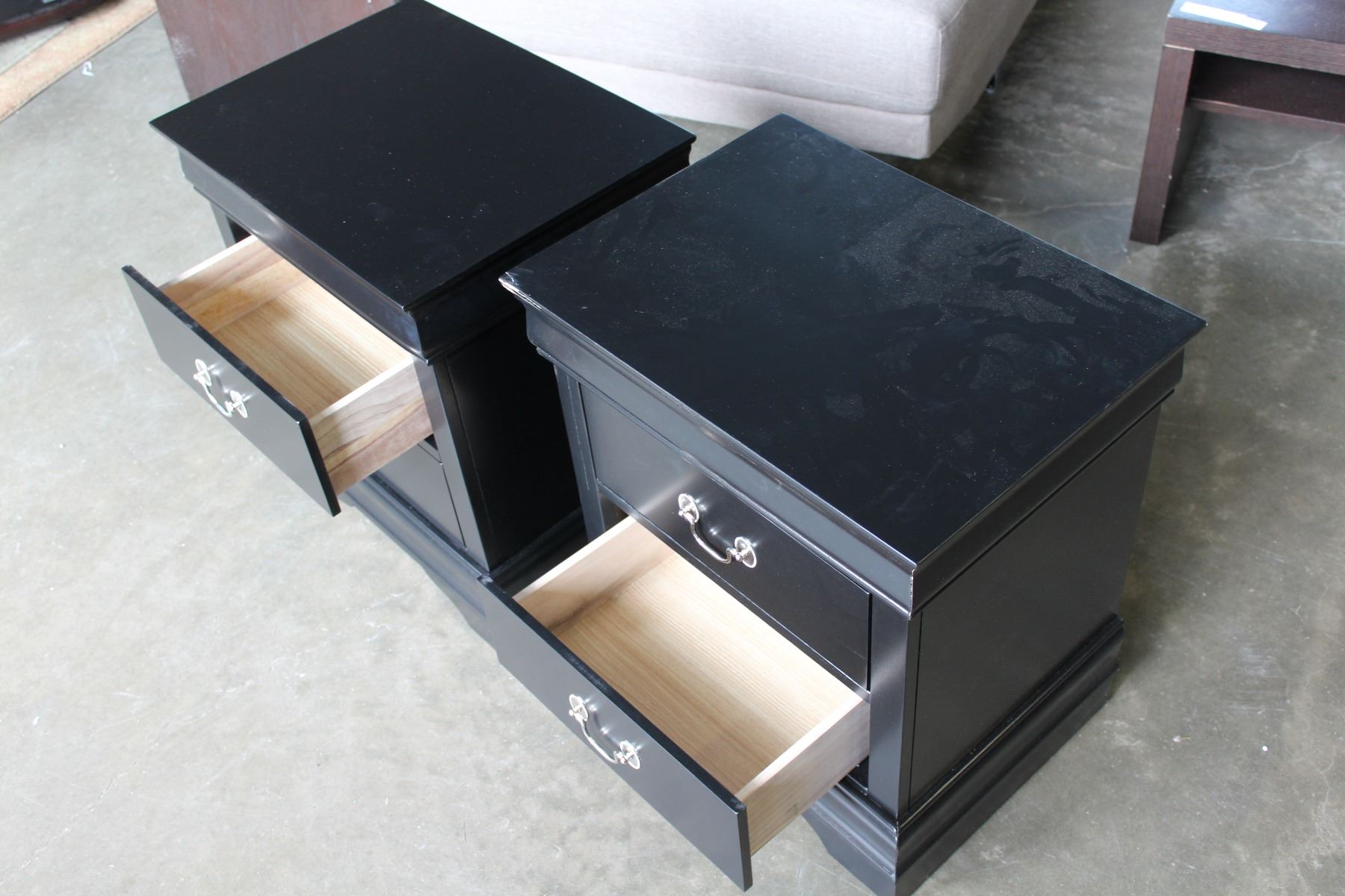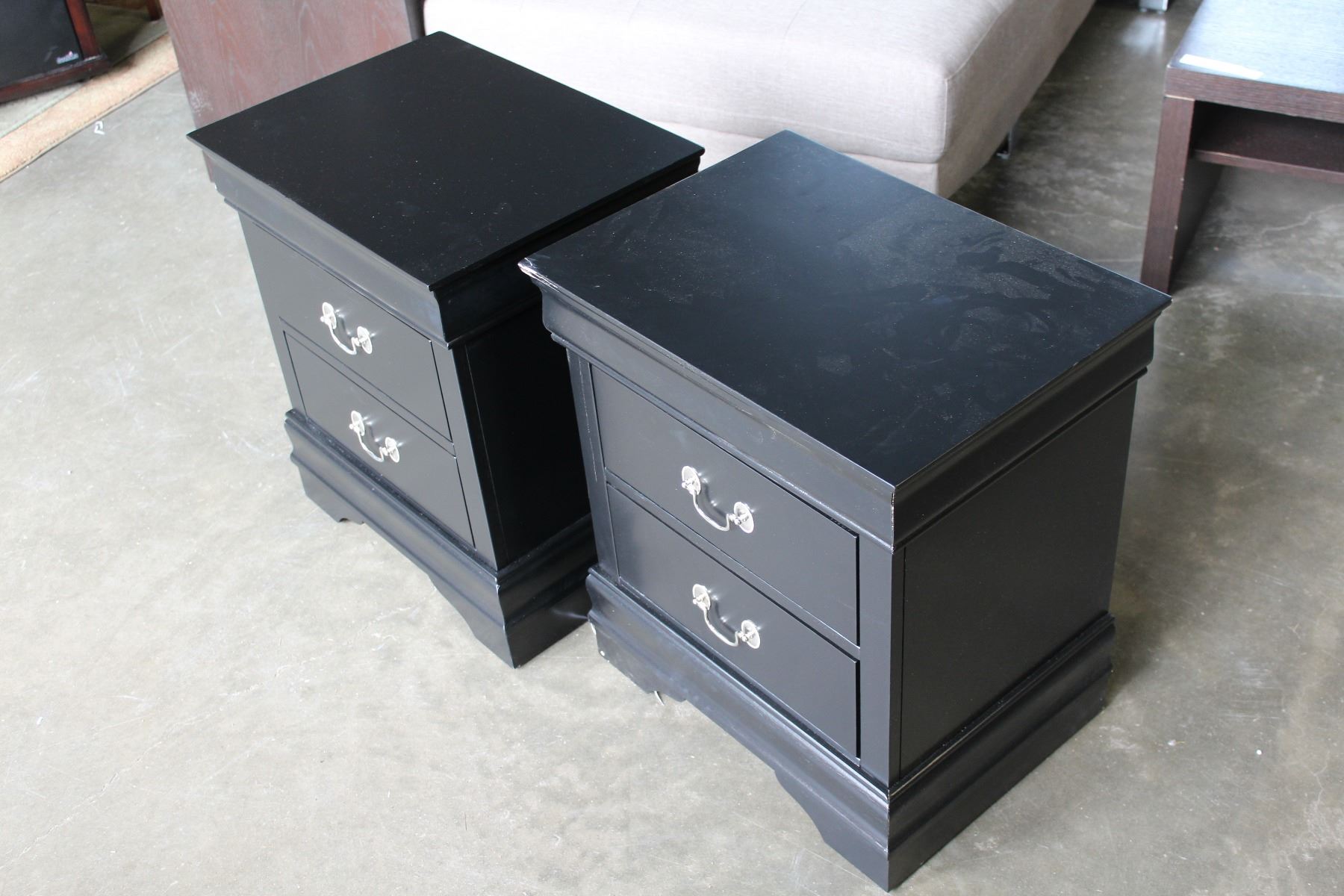 PAIR OF NEW BLACK MODERN AVENZA 2 DRAWER NIGHSTANDS, RETAIL $249ea